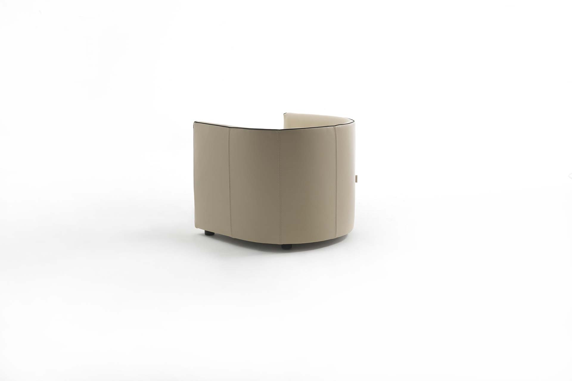 圆形形状让这看起来欢迎扶手椅适合放松和享受一个愉快的谈话