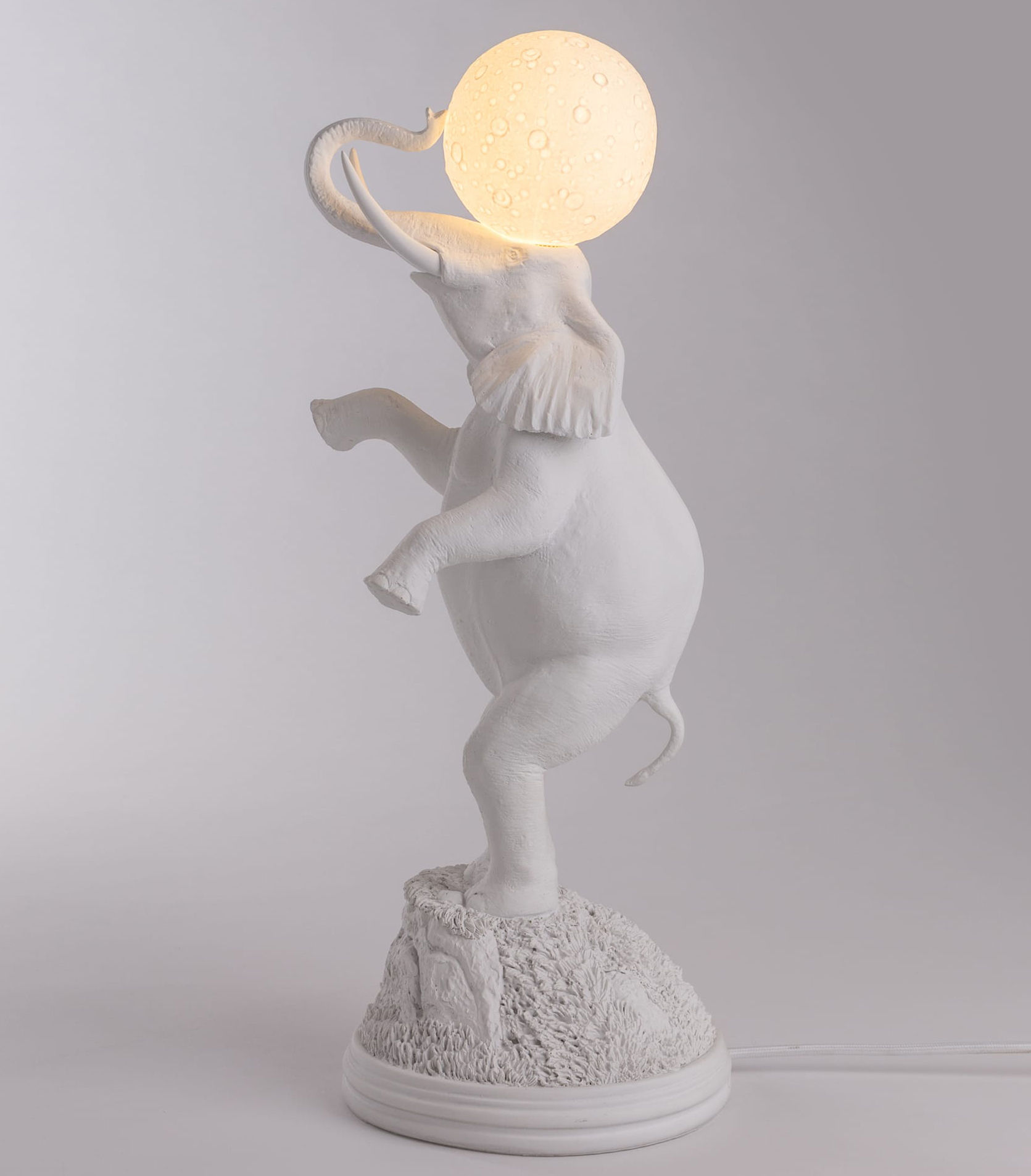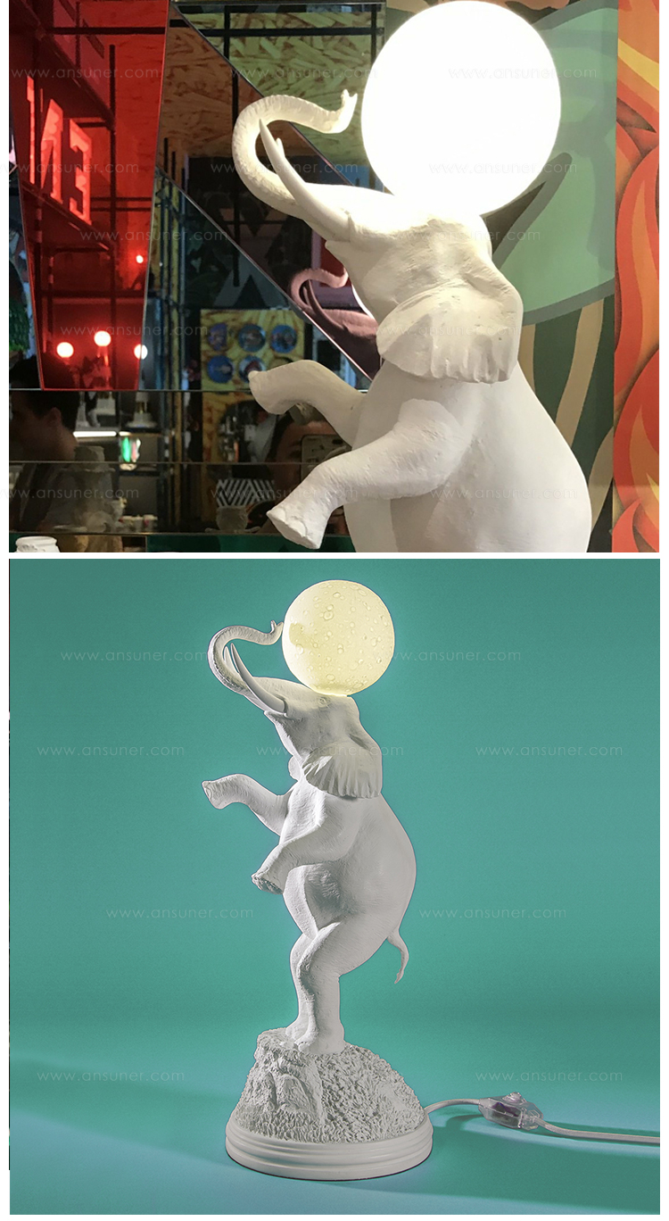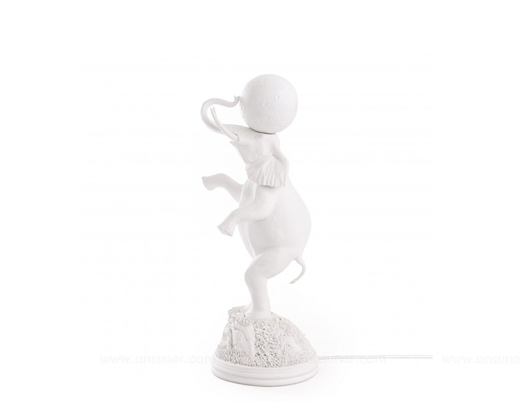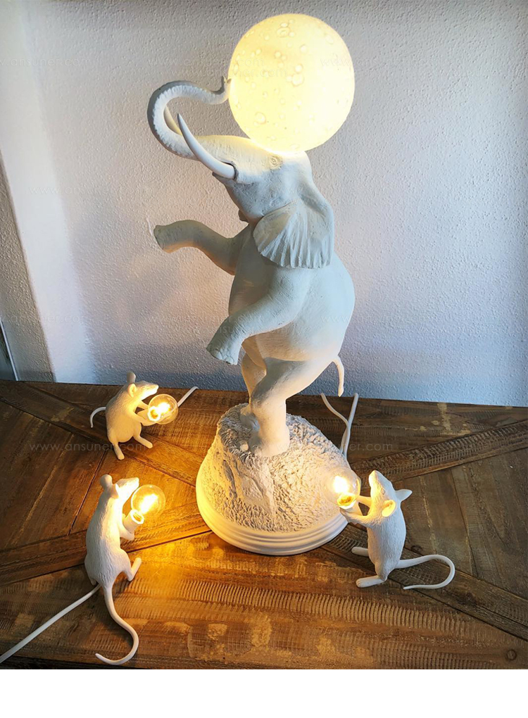雕塑般的设计,表达对自然、动物、月亮之美的热爱,同时也是想要的重新唤起的梦幻般的浪漫,大象灯就是其中一个童话般的见证.