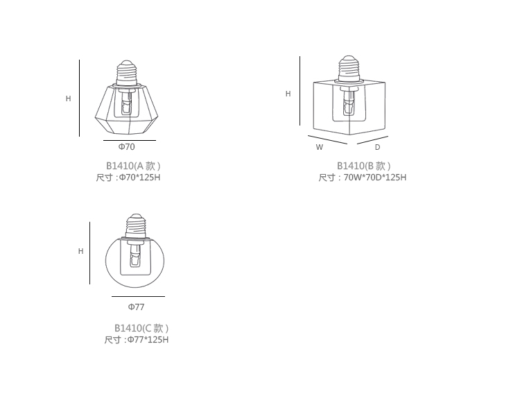 Crystal lamp 系列尺寸/示意图