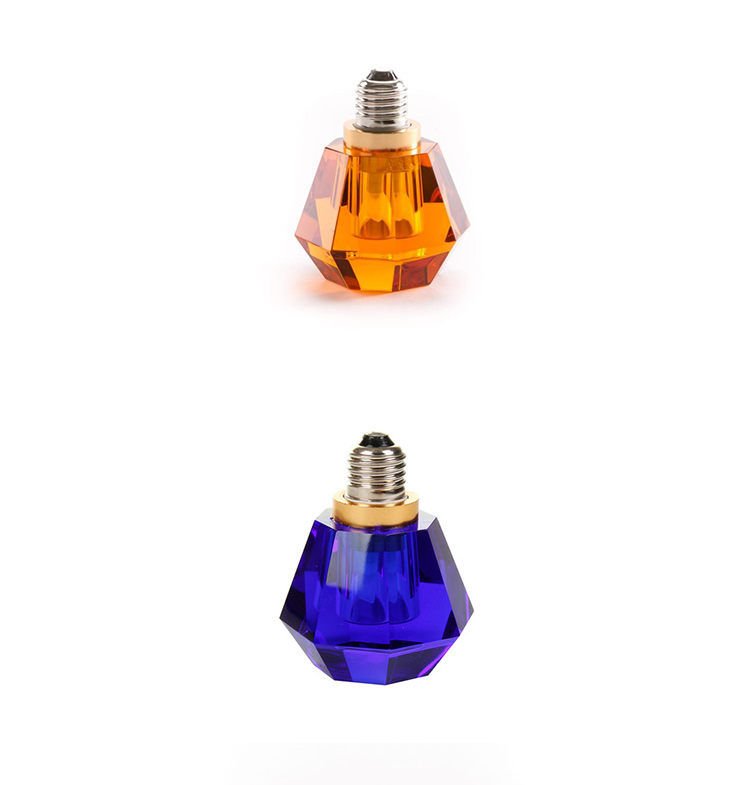 一个新的灯泡概念,在水晶,技术和复杂的透明度之间的对话,经过刻面手工处理.灯泡被重新解读为闪闪发光的宝石,三款灯泡由三种不同水晶形状和三种颜色组成.