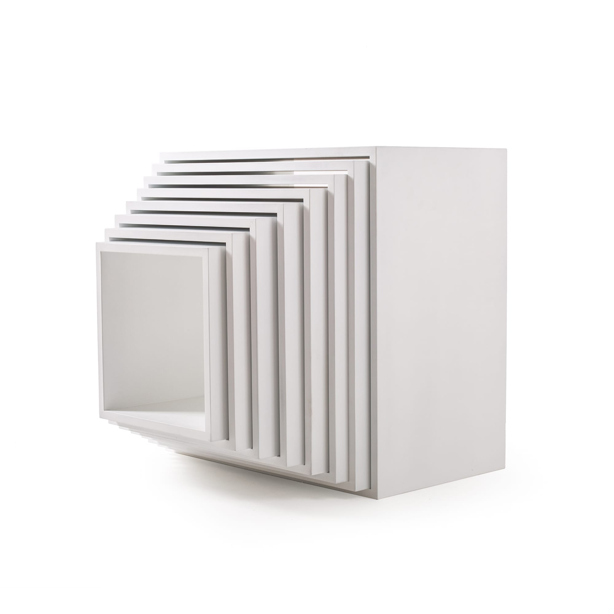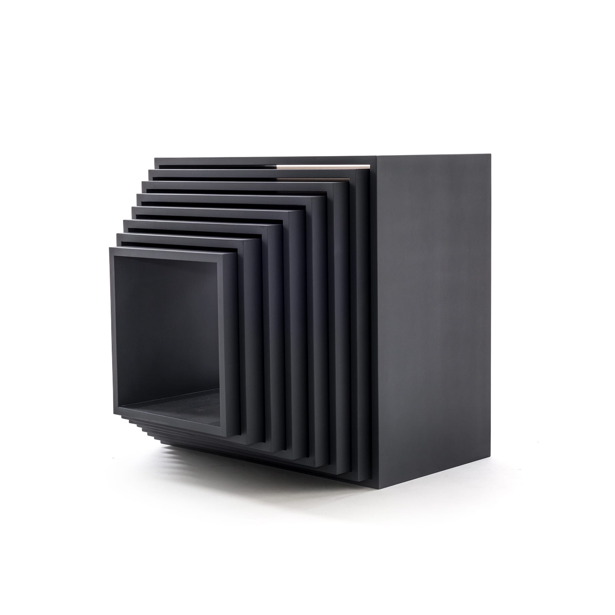 我们一起筑巢,我们分开堆叠!组装是由10个模块组成的集合,它们彼此紧密地相互适应,然后滑出,这样它们就可以堆放起来,作为搁置和储存之用。12个金属夹子用一个醒目的红色紧固器将这些单元固定在一起,并且可以根据你的喜好配置这些单元,或者在需要时改变它们。