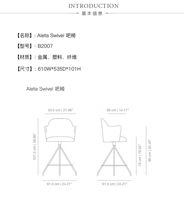 米兰体育app-米兰(中国) - 坐具|吧椅/凳子|办公家具|设计师家具|Aleta Swivel 吧椅