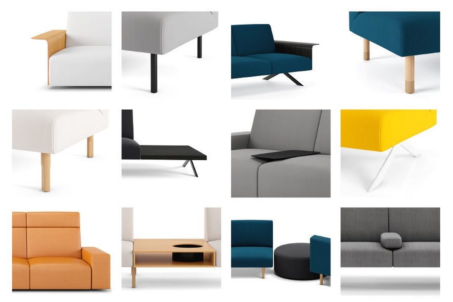 座椅(有或无腿) ,靠背(不同高度),扶手,腿和其他相关配件。