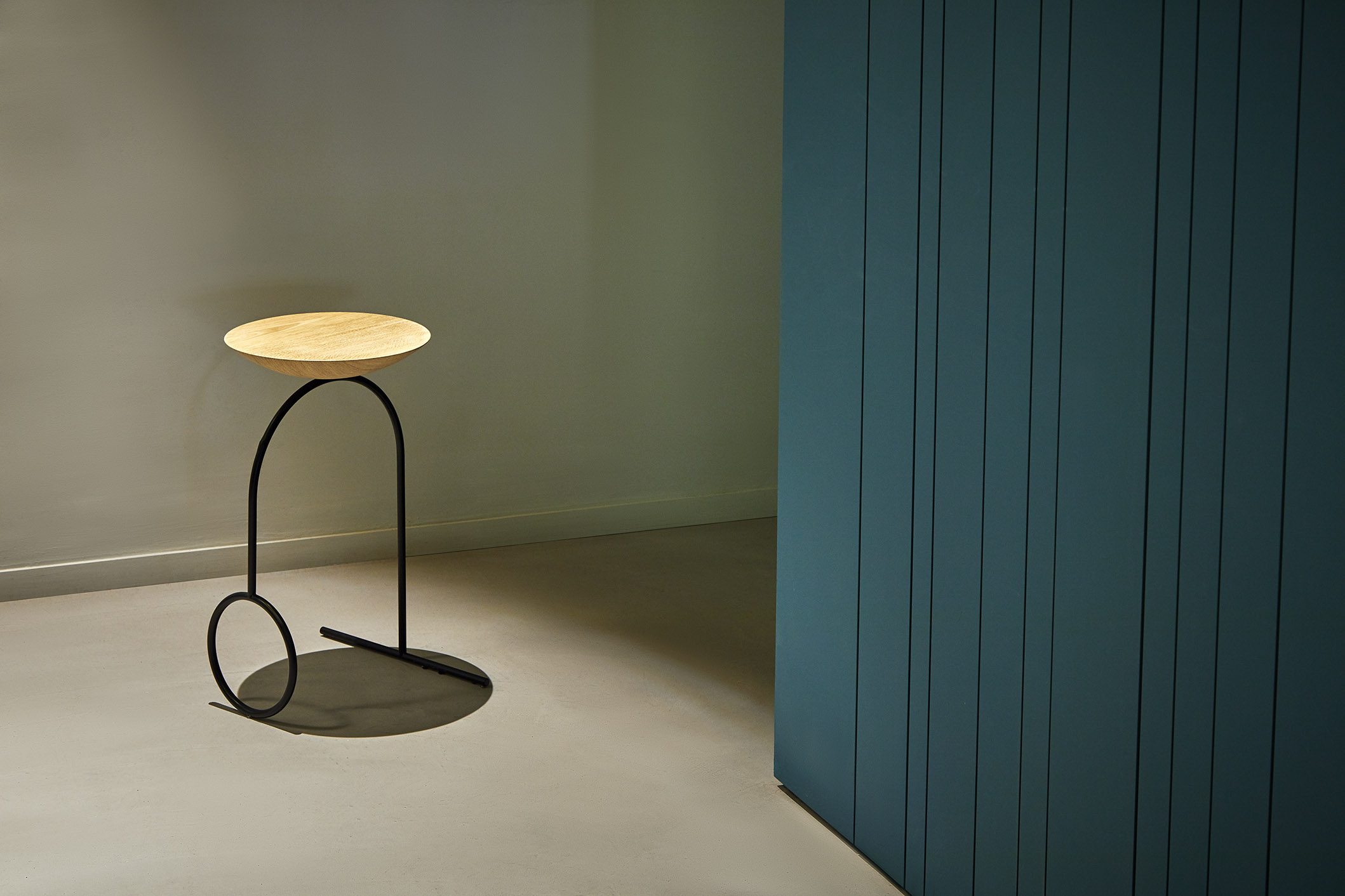 简约的桌子,线条简洁,表格简洁。橡木碗放在弯曲的金属框架上,该框架由形成腿部的圆和直线组成。Viccarte系列可编辑艺术家具作品,而没有压力或市场需求Viccarte不会编辑家具作品,而是雕塑作品,因此使用它时一定要小心,因为它们不会受到严格使用,稳定性等方面的测试。