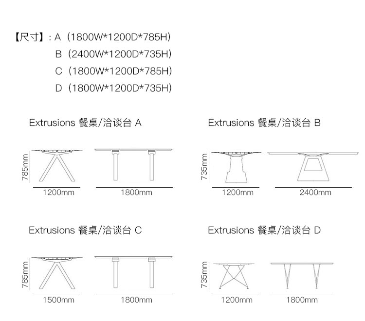 Extrusions 餐桌/洽谈台 系列尺寸/示意图
