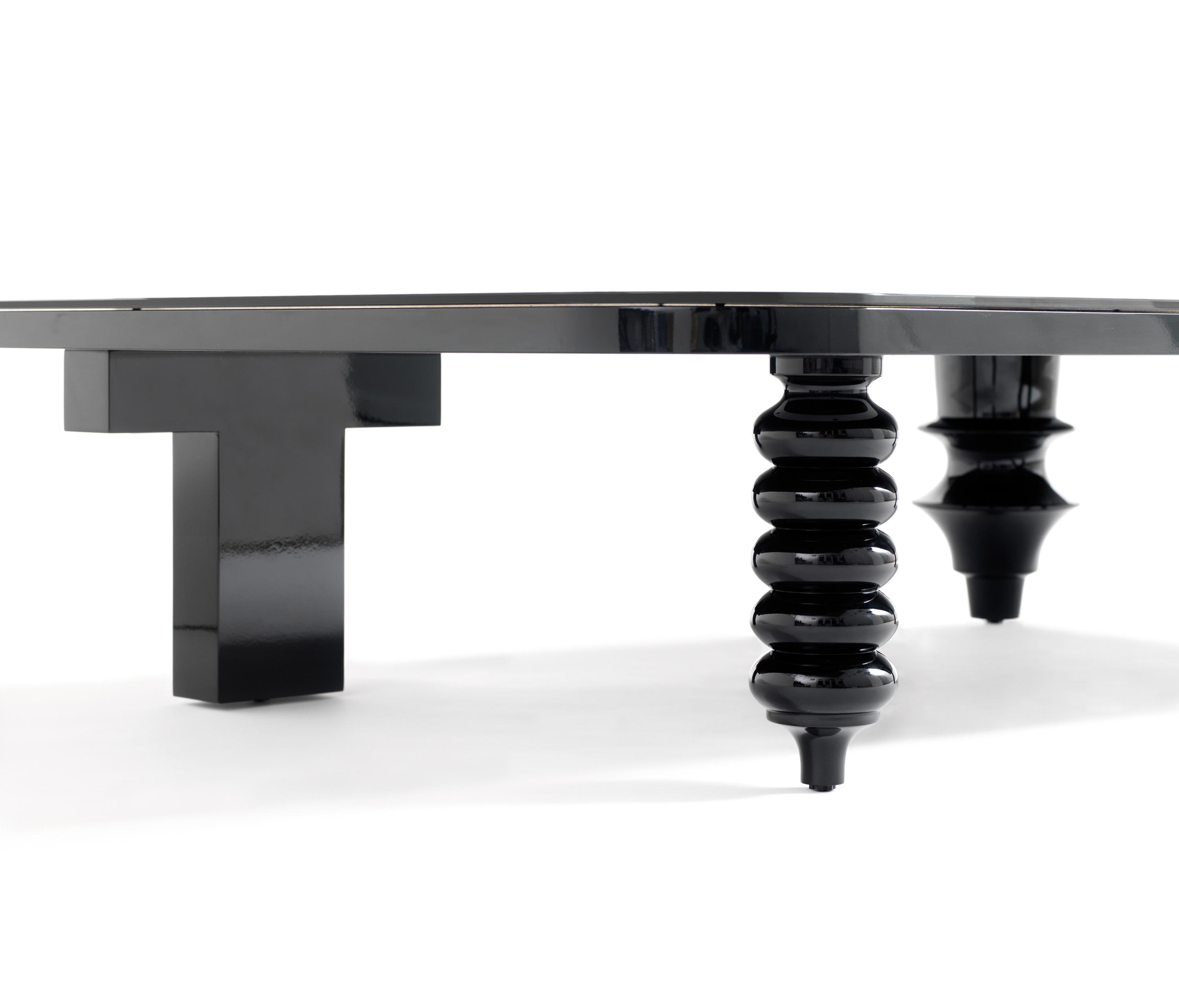 标准表面处理:DM高光或哑光底漆。坚固的turned木腿脚,并涂有不同 颜色的高光或哑光漆。顶部为8毫米光学玻璃,其底面涂有与漆面相同的颜色。 Showtime 10表面处理:与高光泽的标准版本相同,并在Green Patrizia,White Carrara Venato和 Black Marquina中提供2厘米厚的大理石台面。