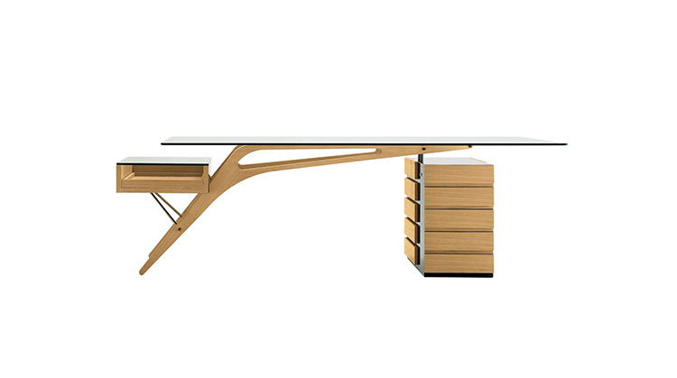自 1949 年诞生以来,Cavour Desk(加富尔桌)的优雅和性感设计仍然是非常独特和令人印象深刻。水曲柳实木台架、优质五金配件、钢化玻璃或实木台面,这些都令人非常着迷。意大利设计师Carlo Mollino。他或许可算是20世纪内最重要的意大利设计师之一,他对于工业、室内、机械、建筑等设计的浓厚兴趣让其涉略多广,而不追求风潮的设计主张也让作品更加历久弥新。虽然在当时,整个大环境似乎并未给予他太多的掌声,但作品的深度与创意在今日来看却是不证自明。