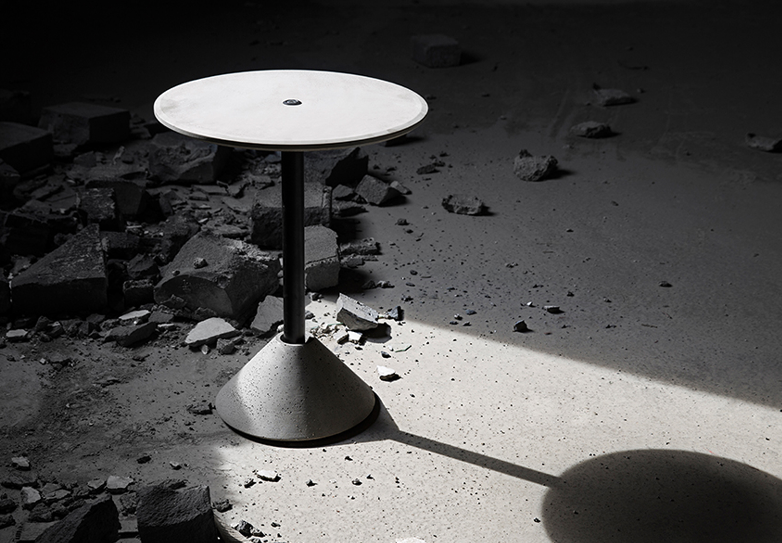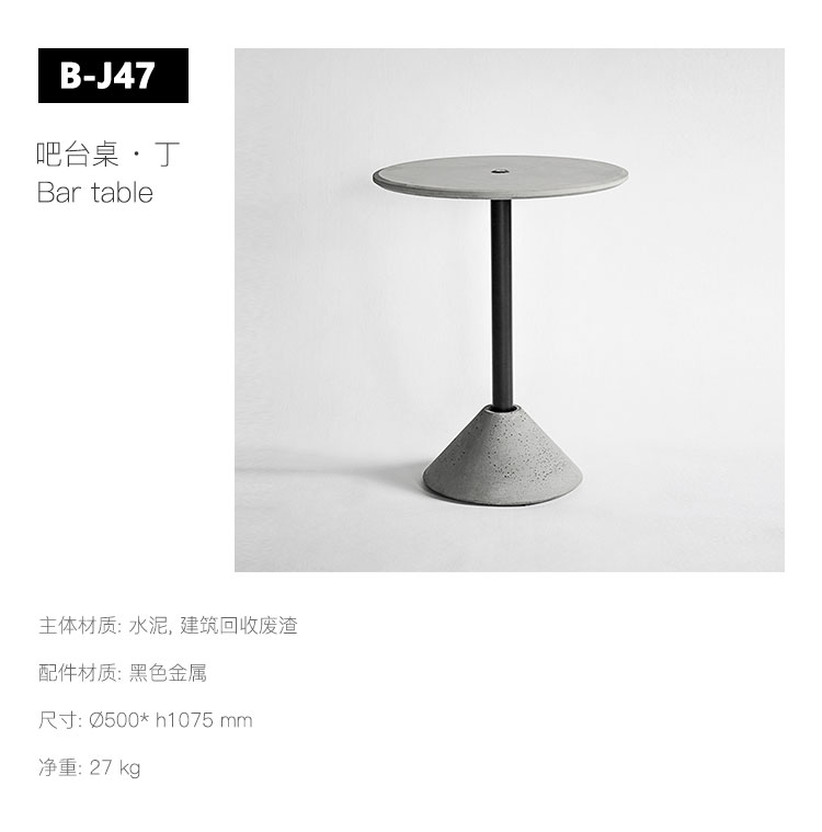 桌子底座与面板均为水泥,金属部分使用了不锈钢材料与防锈涂料处理,增强了使用的耐久度。 面板内含纤维网使其具有韧性并且增强了面板受力程度。水泥部分均可拆分,方便运输。