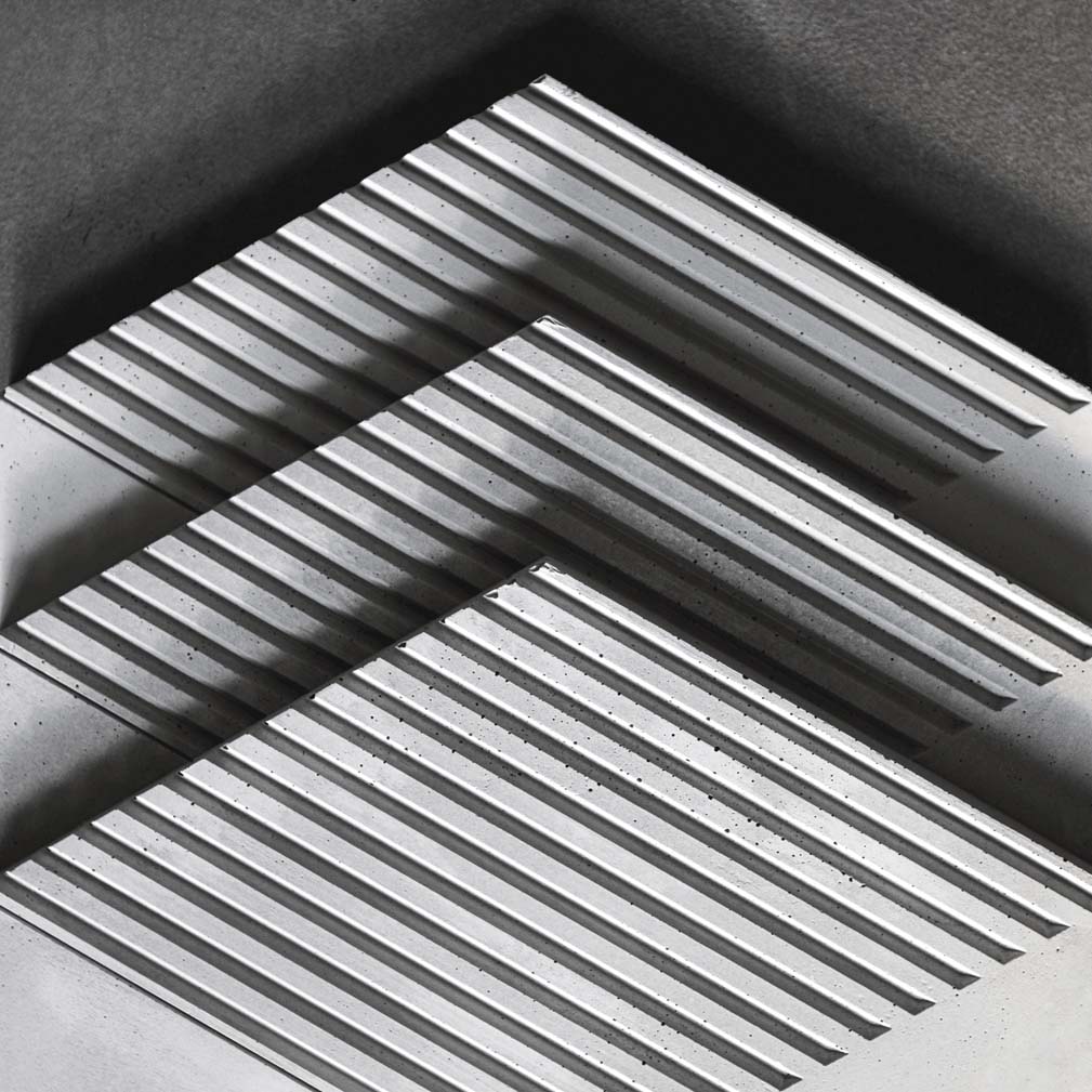 消费时代的春雨催生出一茬茬 新需求,也催生了人类欲望的疯长。 生产不再只是满足生存的基本幸福,人类垄断、自然破产、大地亏空,欲望的掺杂让生产虚假地膨胀, 大量陶瓷边角料的堆弃成为最佳注脚。将陶瓷的沉痛哀鸣一并搅碎倒进混凝土骨料,在流水线的模子里灌造极致。 一方方,灰白,坚韧,平滑,庄重,是生命死来复生的肃穆,是欲望燃尽的苍白沉默。