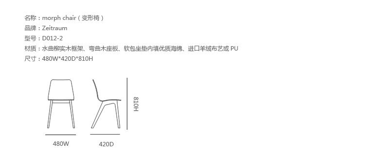 德国设计师Formstelle用简单线条设计出堪称完美的Morph Chair,2006年设计,延续了北欧设计的风格和精良的制作,风靡全球。这款椅子采用进口的水曲柳实木木材制成的框架给人一种舒适休闲的质感。椅子的支架嫁接部分采用榫接工艺,架构稳定牢固。凳脚的定位赋予椅子一个独特的姿势,灵活方便。这款简单的椅子由于其精美时尚的外观深受小资白领的喜欢。