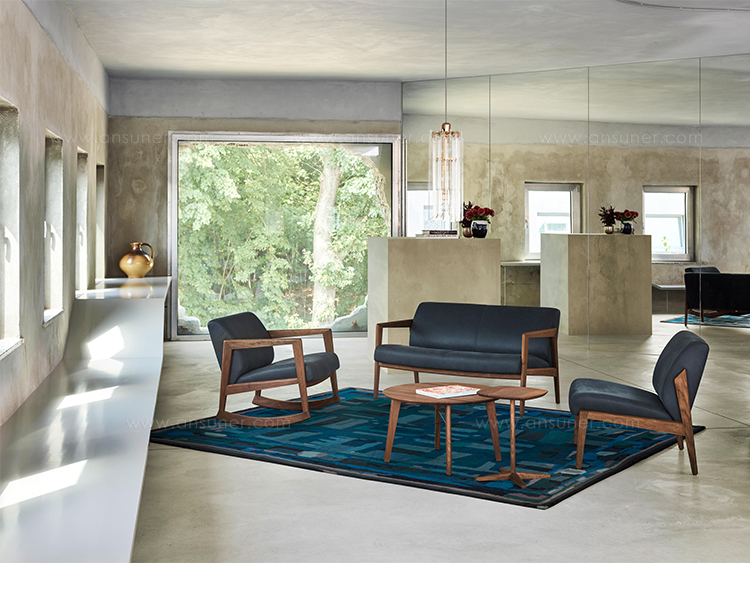 几何图形的轮,水曲柳或胡桃木或实木框架,优质环保高密海绵填充、外裹高级进口布艺或PU,做工精湛,这是860系列休闲椅的特征。非常舒适的坐垫和靠背,出的、动态的轮廓,适用于商业和休息环境。设计师Lydia Brodde说:“我尤其着迷于1960年代的设计及其清晰,几何的形式。 我想将这些元素转化为一个新的永恒。”。这就是她设计860的初衷。一把适用于任何环境的椅子,并可根据个人喜好赋予其个性化,860休闲椅做到了。实木的框架,有扶手和无扶手两种版本,在配上一个脚凳椅,保证了最大松弛度和舒适感。
