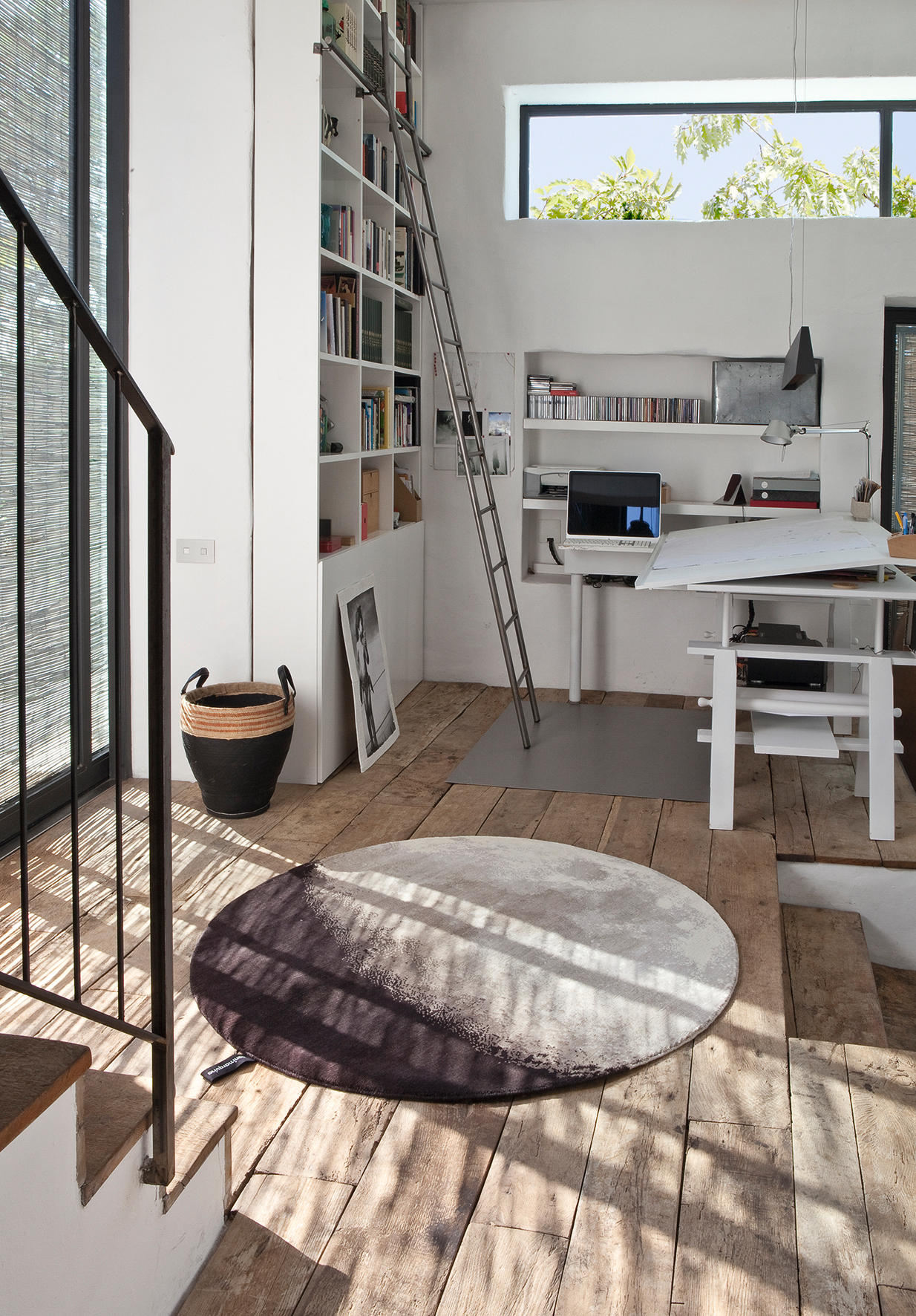 把月亮放在你的脚边。这个梦幻般的作品是80年代的重版,它来自于奥斯卡·托斯卡斯的La Tierra和La Luna地毯。
