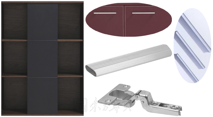 ※ 上图的文件柜细节展示图,木析纹理和质感表现得更为淋漓尽致,色泽自然,此款文件柜采用的是锌基合金一字拉手,铝合金挂衣通,镀镍暗门钢制铰链,中部黑色油漆板作为装饰板,更添文件柜的高档与另类!