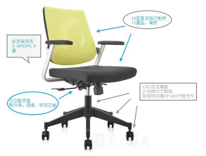 A:扶手架采用∮40*20*2.0蛋管,45密度发泡切割棉,12厘座、背板,