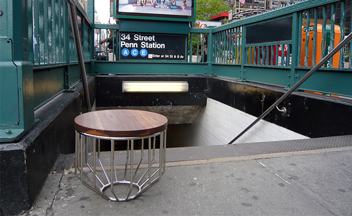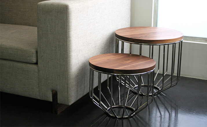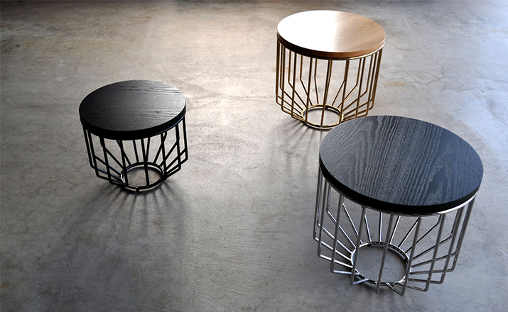Blending sloping angles and taut lengths of bent metal are a modern interpretation of the wiry idea initially conceived by Warren Platner.The series is made up of a suite of wire tables,side tables and benches and fitted with luxurious solid wood tops.