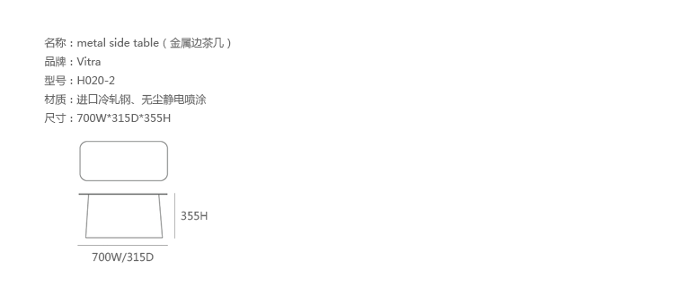 Metal Side Table(金属边茶几)为设计师兄弟Ronan和Erwan Bouroullec为vitra设计的。金属边茶几的设计造型是可长可短的立体柱子,茶托向外扩张,构造出优美的立体空间几何形状。可以放在长沙发或几张椅子前面,非常舒适。您可以将它放在卧室、会客室或是办公休息室,在宽敞的、不拘一格的桌面上,陈列精美的艺术品、新鲜的花、杂志或是专业书籍。