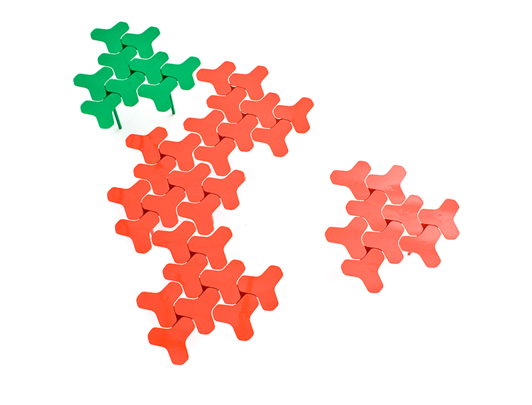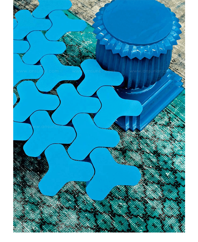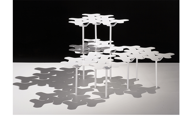 Nanook系列是由瑞士设计师Philippe Bestenheider于今年为意大利Moroso设计,并在今年的米兰家具展上进行了展出。Nanook系列包括一把凳子、一把椅子和一张角桌。该系列作品表现了平面到三维世界的转变。凳子和椅子的六边形网状结构的灵感来自于分子几何学。Nanook系列以铸模成形的合成材料作为基本框架,而其座椅部分的表面织物上则进行了打褶和印刷处理,使其看上去有动物皮肤的紧致感。如同因纽特人用动物皮毛取暖一样,作者试图用这种方式唤起人们深处的记忆,而他的创作灵感也源自遥远的北极。Nanook系列的桌子和凳子看上去更像是雕塑而不是家具。设计师源自分子结构的灵感让人们感觉该系列更加独特,尤其是多张桌子并排放置时,产生的效果就像一片静静矗立的风车。而有靠背的椅子则更像是一片被折叠的五彩雪花,令人犹如置身于神秘的北极。