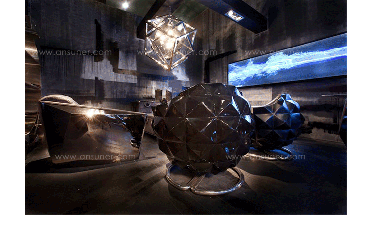Mines Swivelchair(地雷转椅)是Michael Yeung天马行空的创意作品。地雷转椅灵感来源于深海矿物形态,以此转变成这把舒适的转椅。制作采用进口玻璃钢压模椅身、表面优质烤漆工艺、内部填充优质高密度海绵、表面扪PU/真皮。
