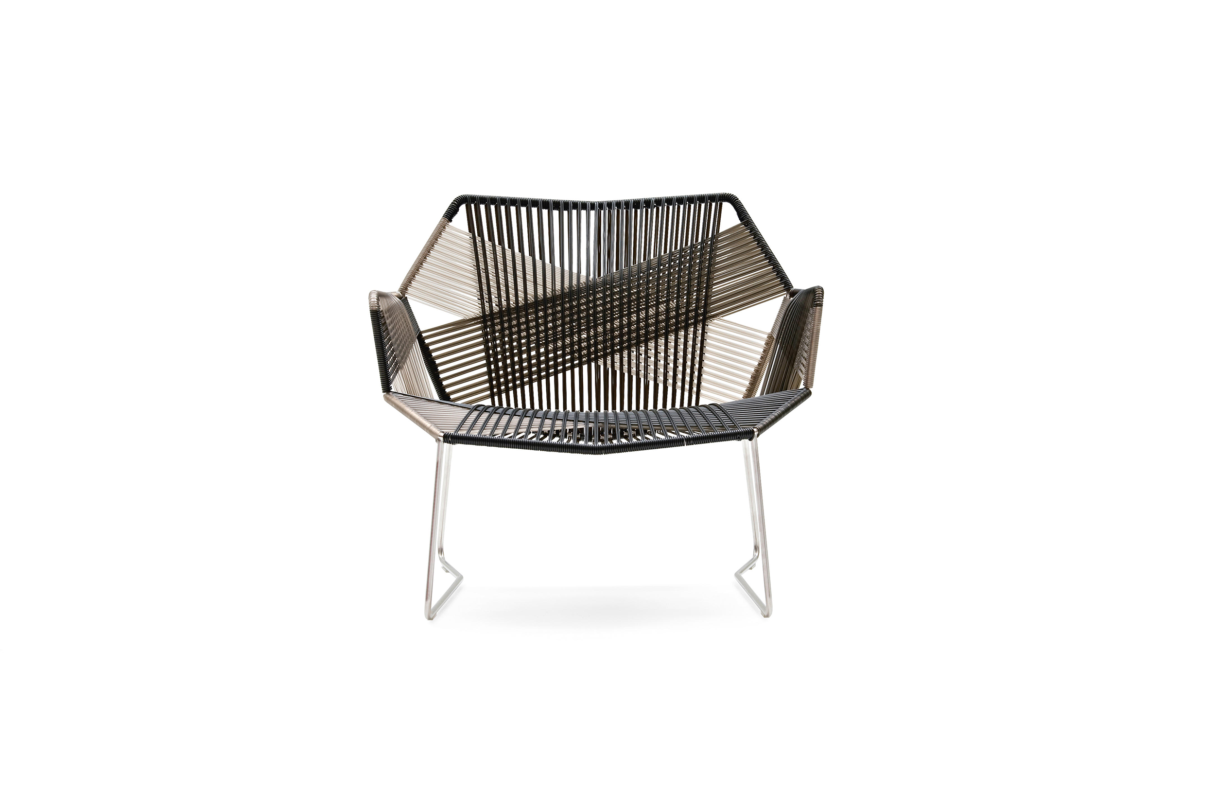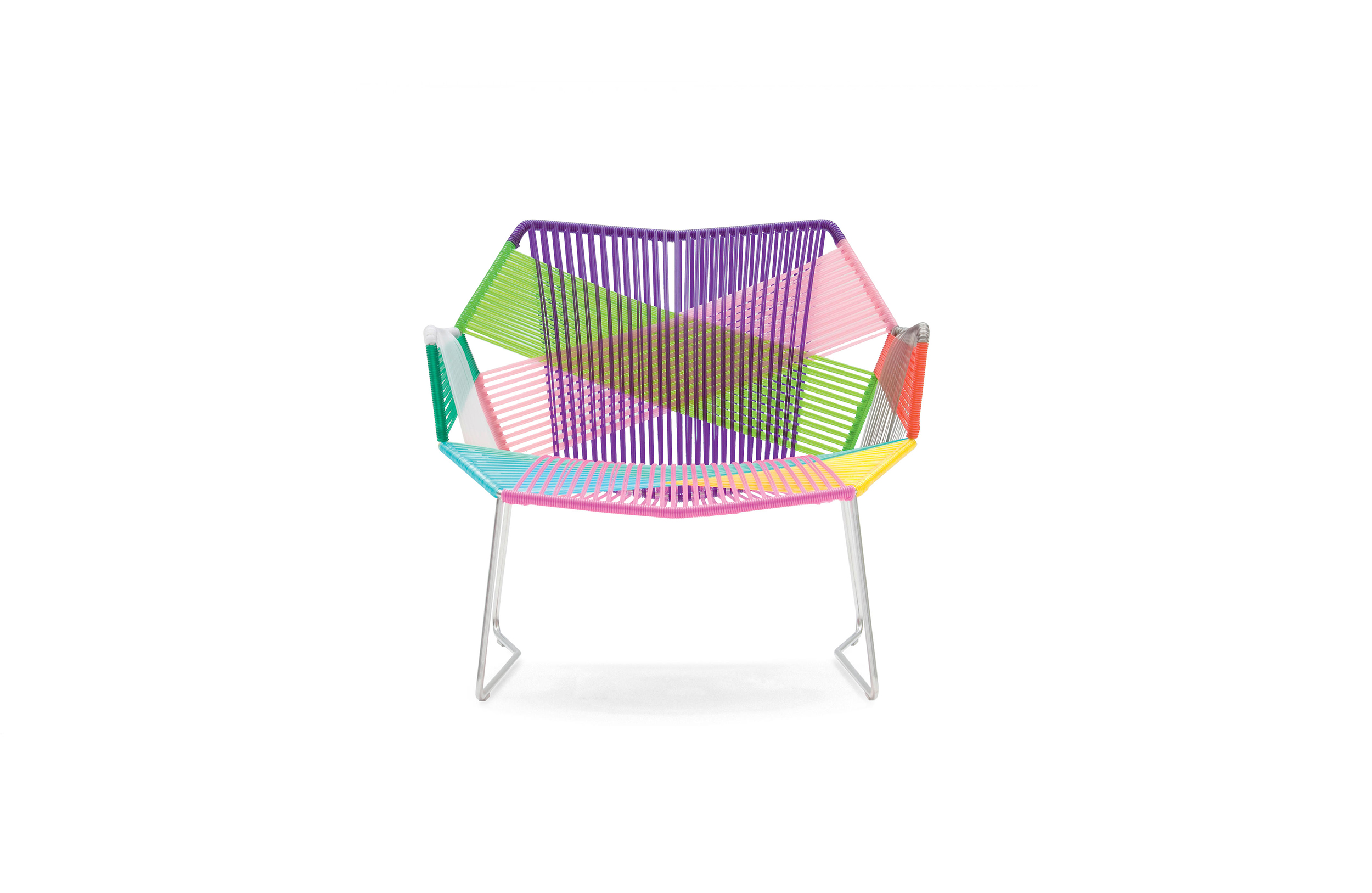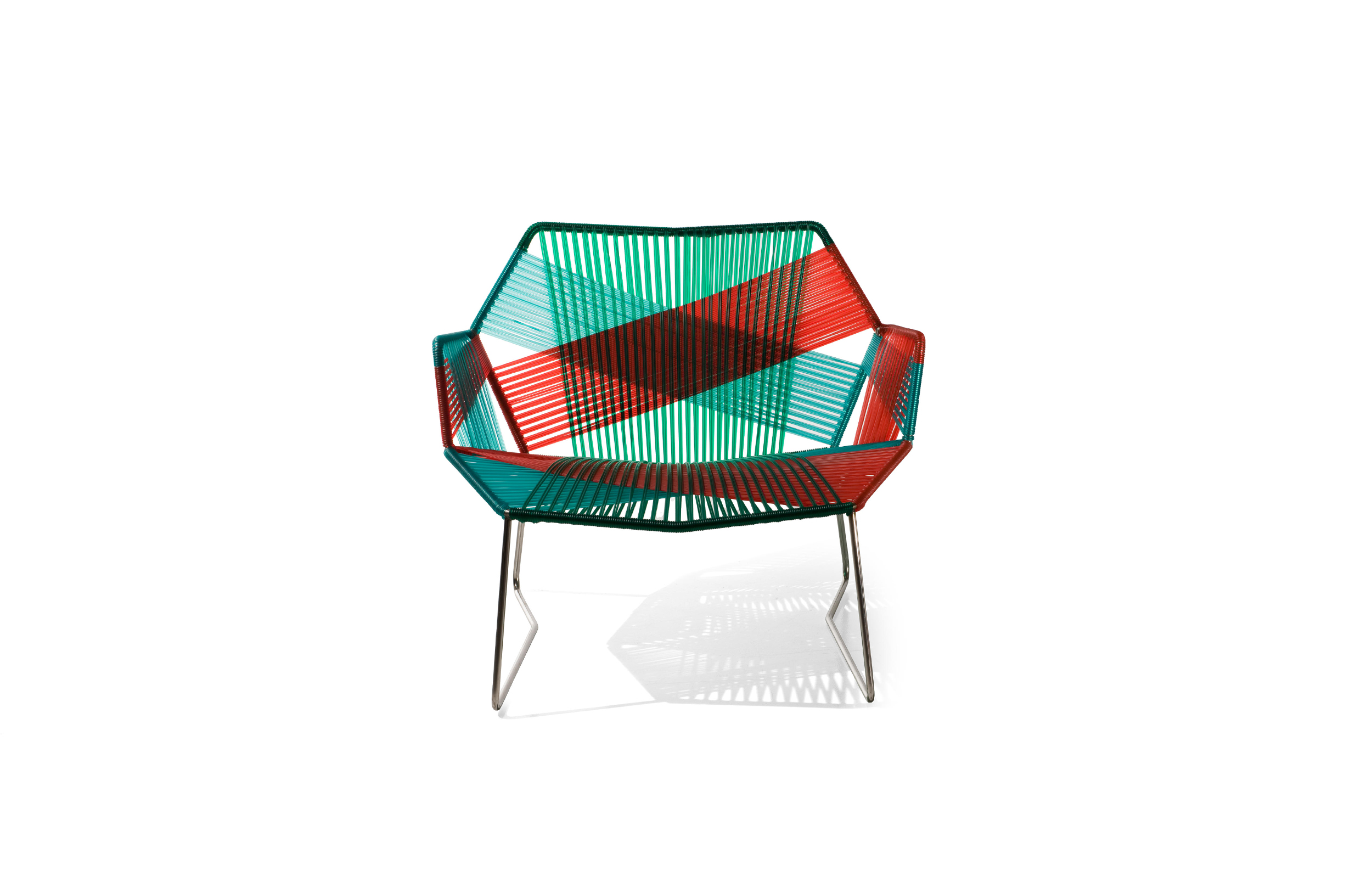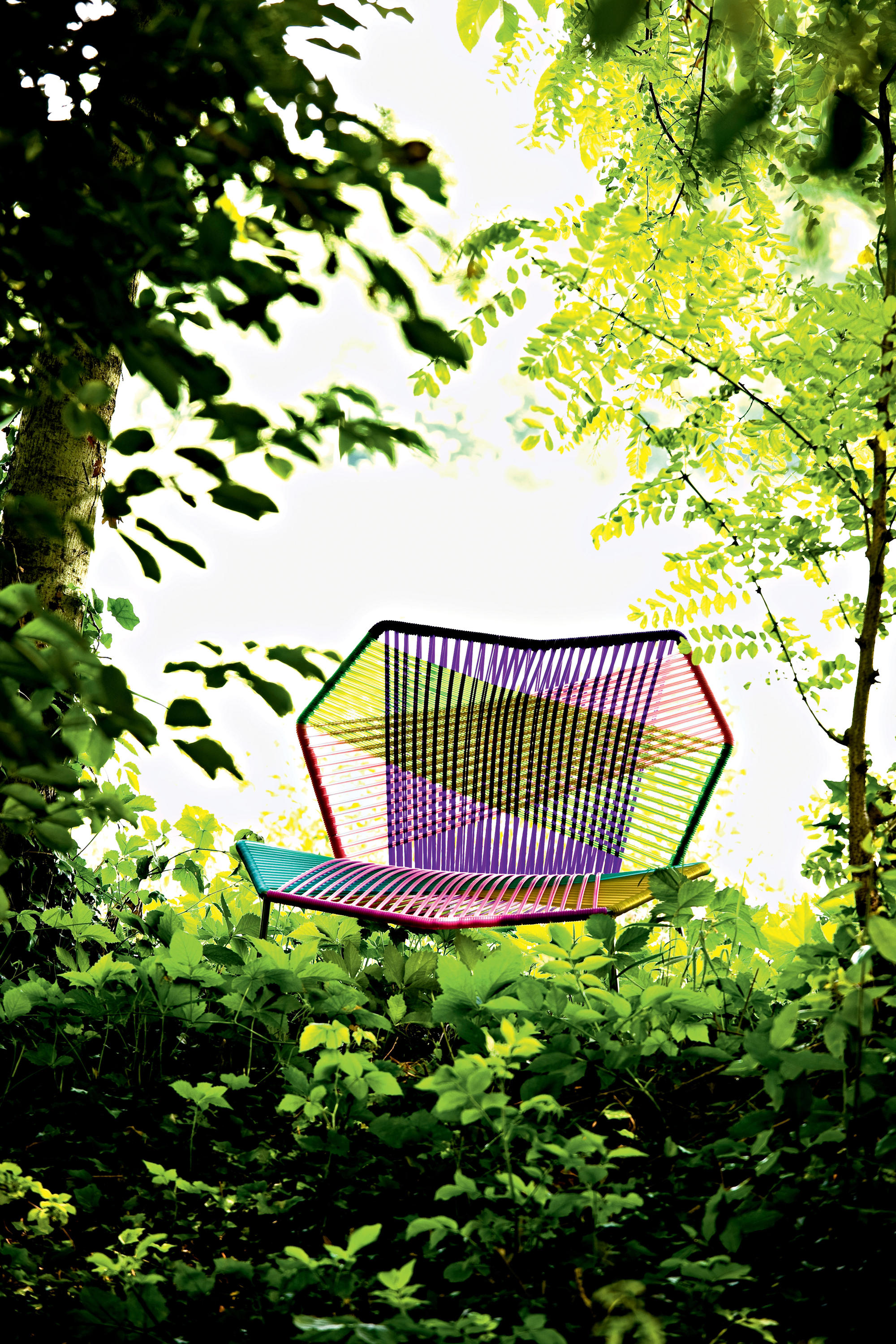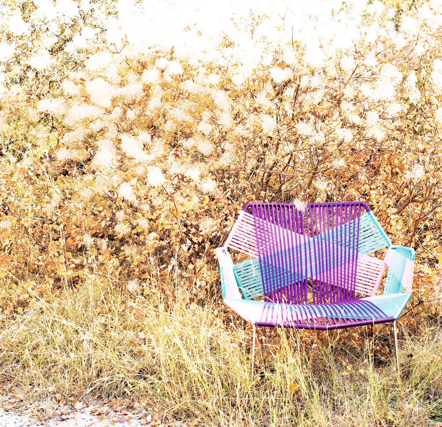 安蒂博迪(Antibodi)的钢管框架成为设计师用于创意改造的起点。框架被包裹和变换,座位根据所使用不同颜色的材料呈现不同的个性。两到三种颜色的线条以螺旋的方式将钢管包裹起来,形成了一种有趣的颜色复杂的设计。