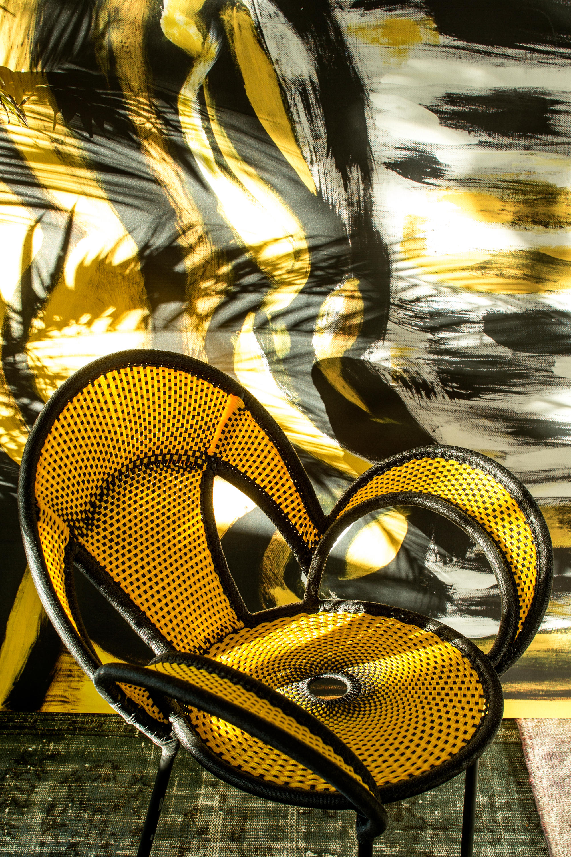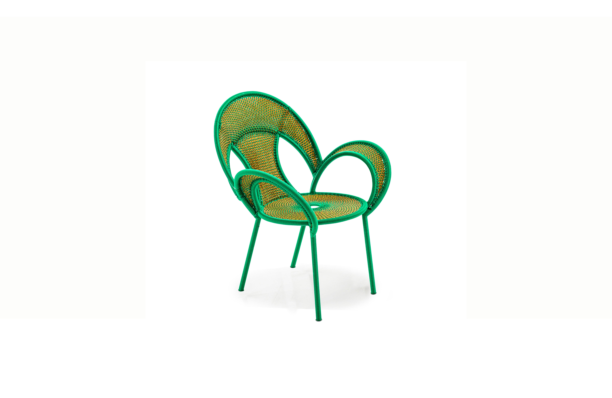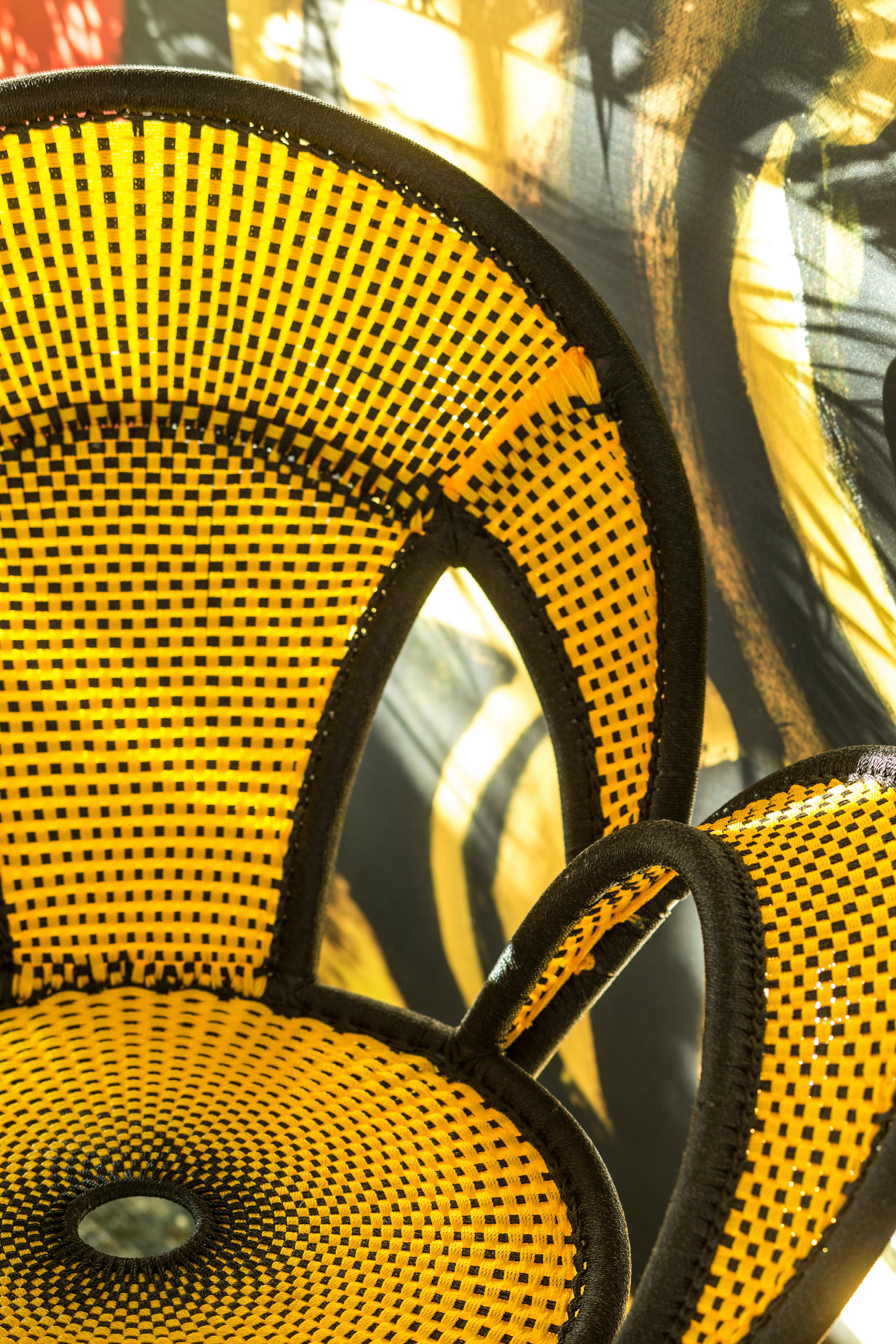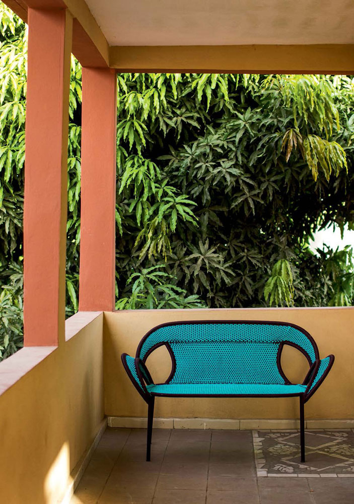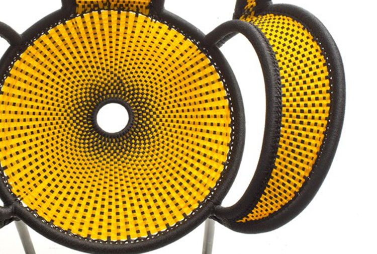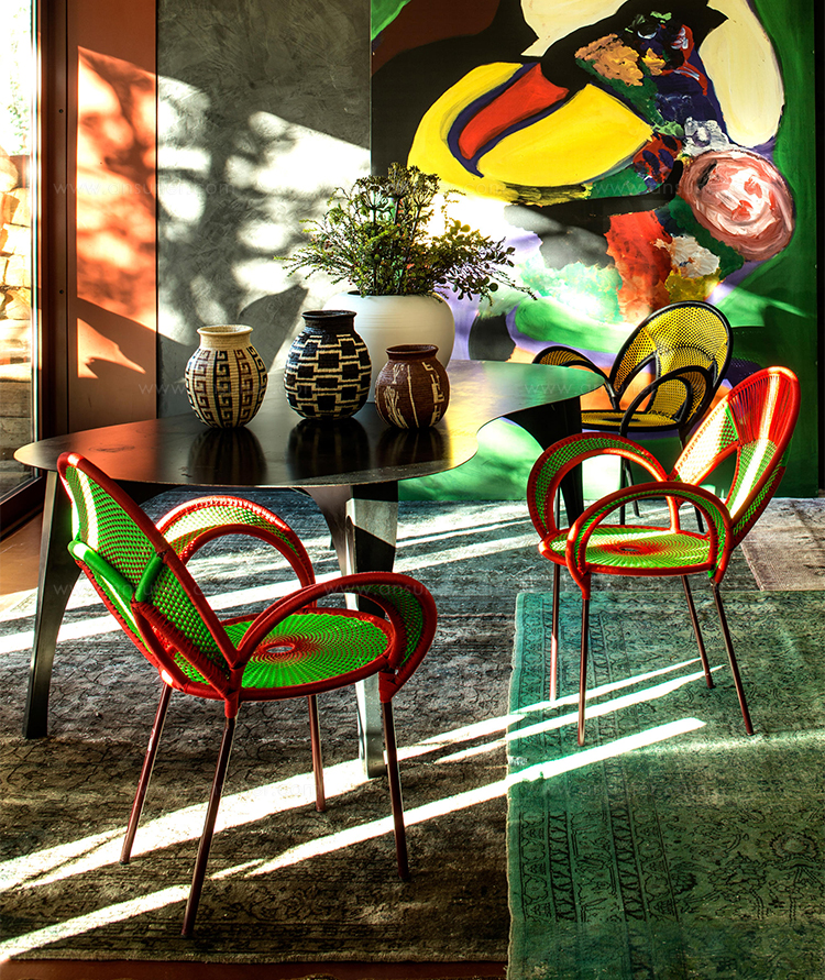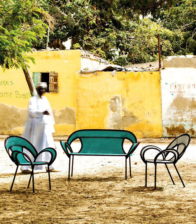 这个椅子的形状,尤其是扶手的形状设计,灵感来源于雄性鸵鸟在求偶时所跳的舞蹈,banjooli的扶手如同雄性鸵鸟伸出了翅膀,向雌性展示它们的美丽。Banjooli是M 'Afrique的一部分,由设计师设计的一系列椅子,由非洲手工编织者使用渔网的纱线生产。纯手工编织,不完美,但真实。