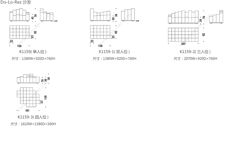 Do-Lo-Rez 沙发 系列尺寸/示意图