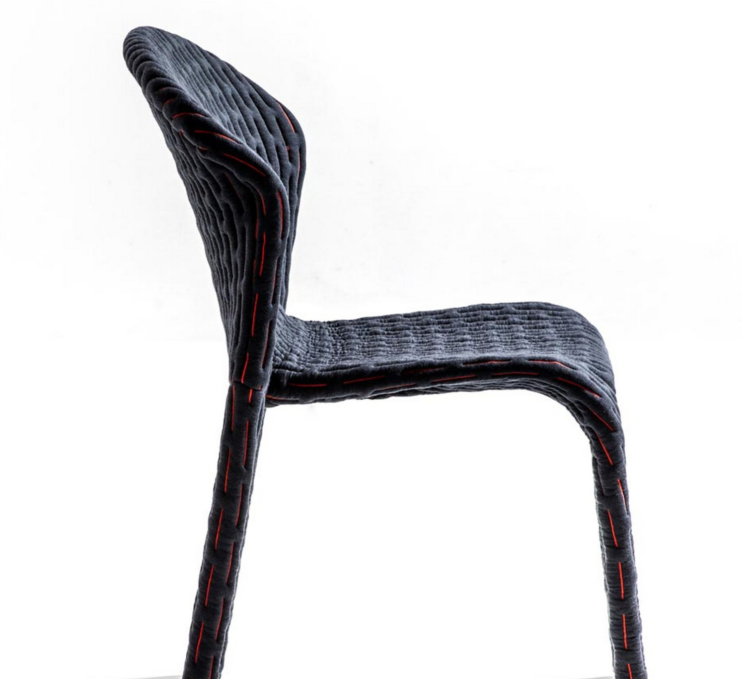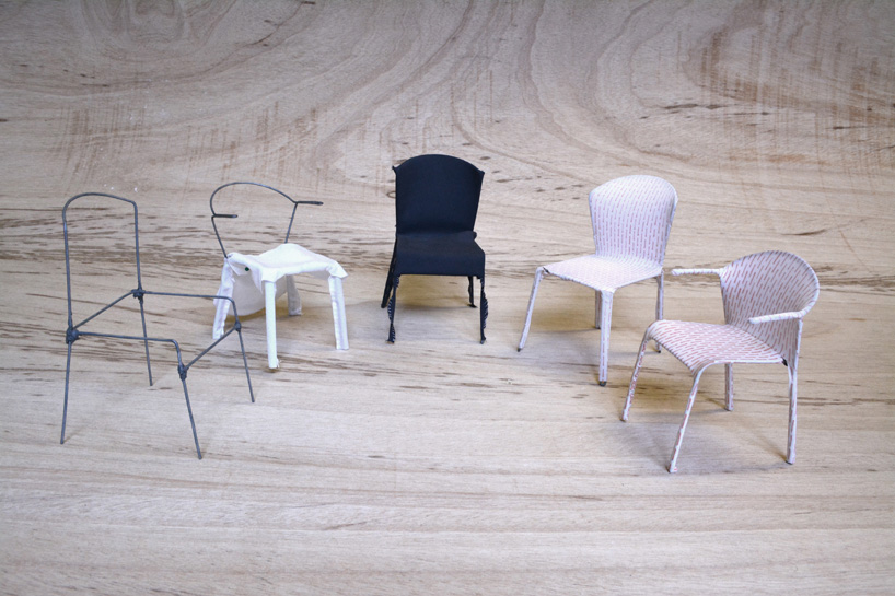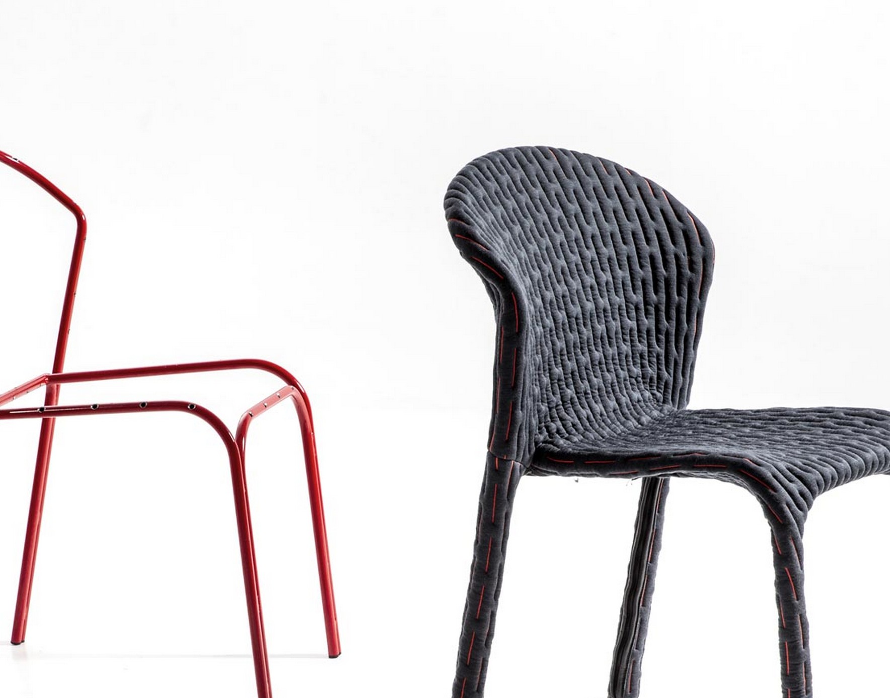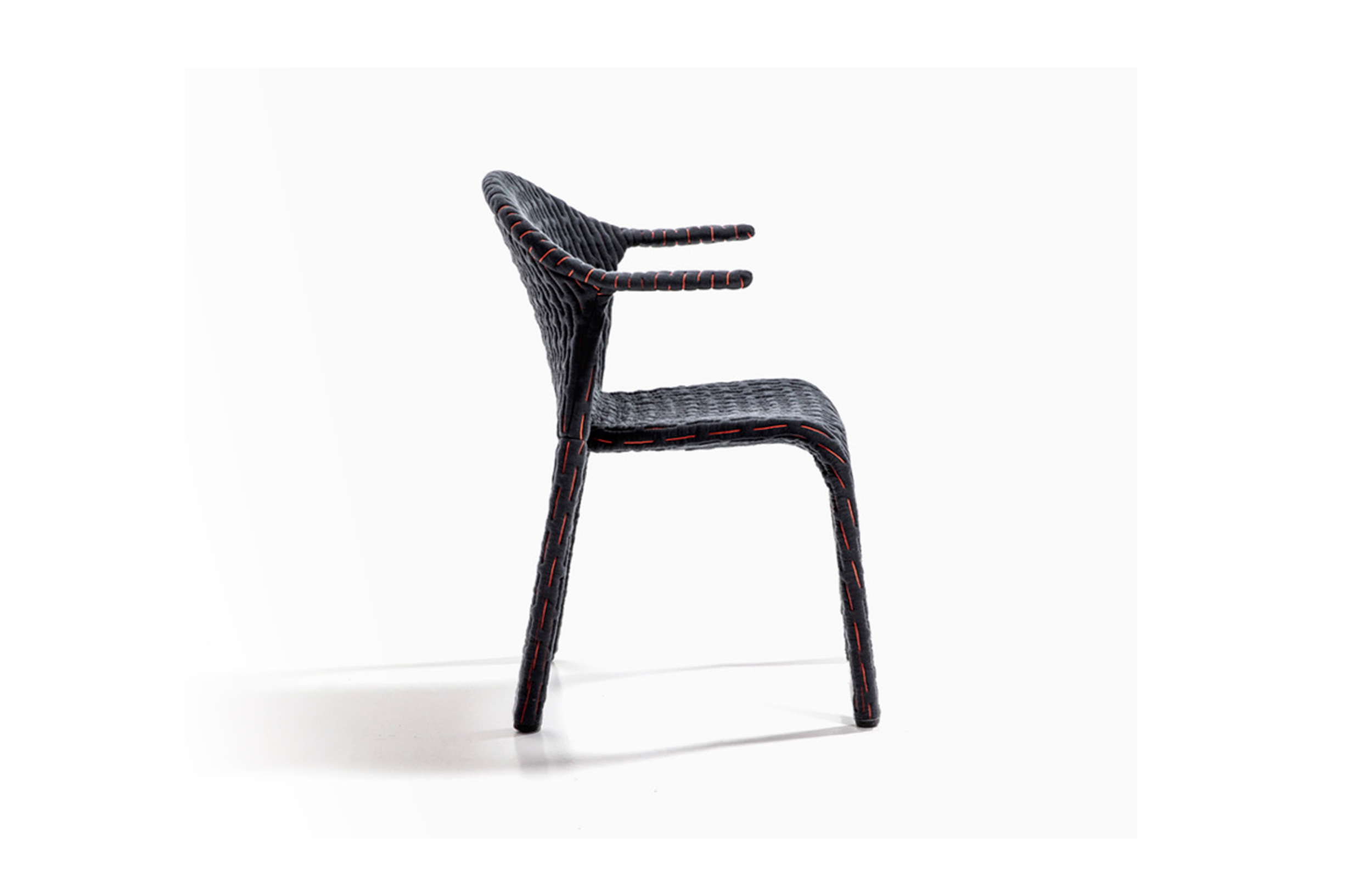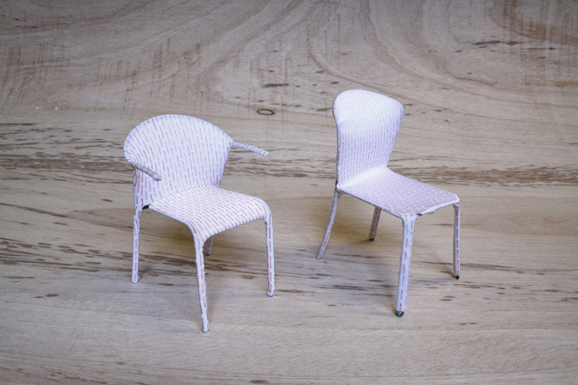 伪装成休闲椅的扶手椅,用他们的外表来控制空间。这主意很简单,用一件有衬垫的大衣盖住金属框架然后把它变成别的东西。一种非常直立的姿势,扶手的形状让人联想到双排扣外套的翻领,而这种相似之处就在中央扣扣上。室内装潢变成了衣服,可以在不过度的情况下,将赤裸的身体转变成一种追求自身内在同一性的物体。