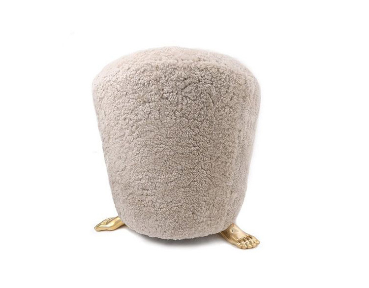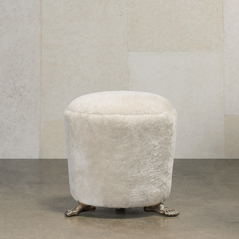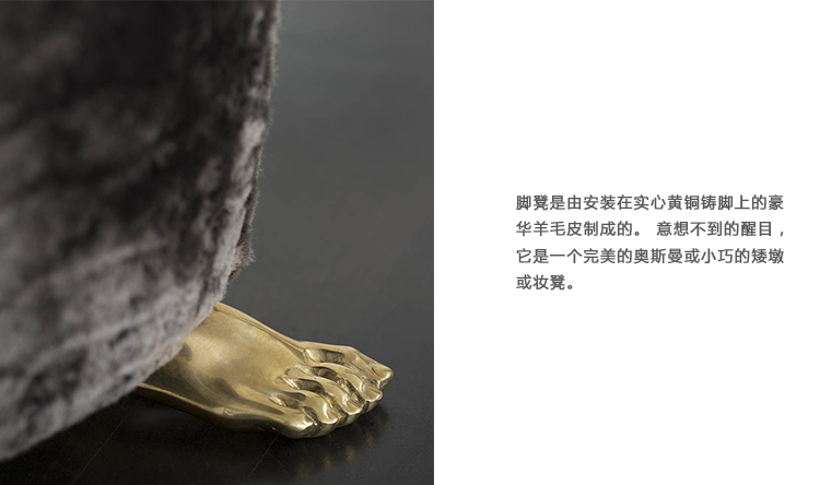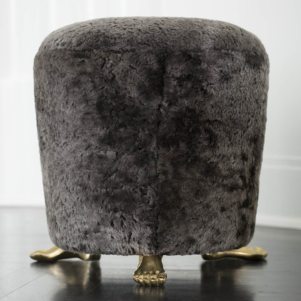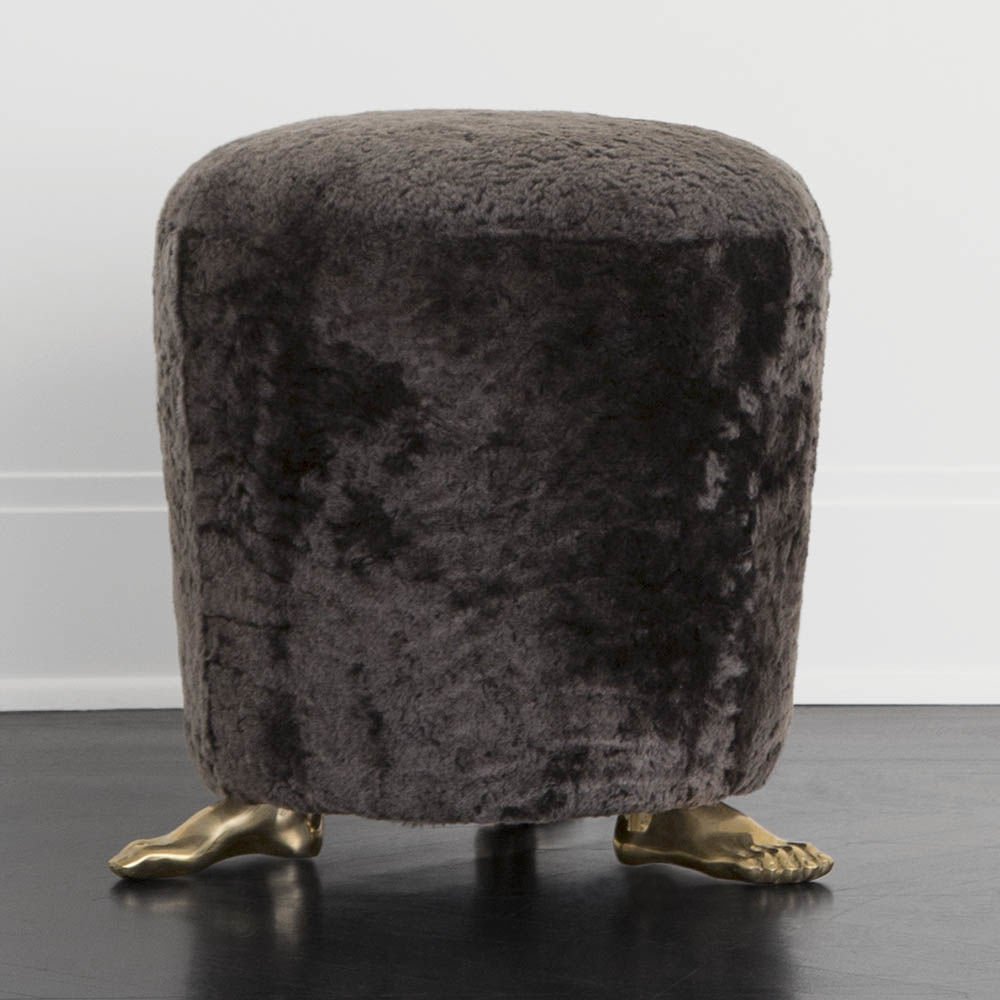 脚凳是由安装在实心黄铜铸脚上的豪华羊毛皮制成的。 意想不到的醒目,它是一个完美的奥斯曼或小巧的矮墩或妆凳。