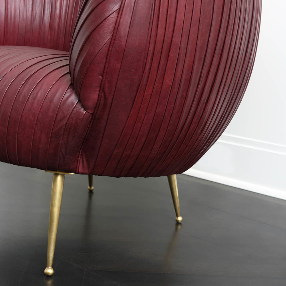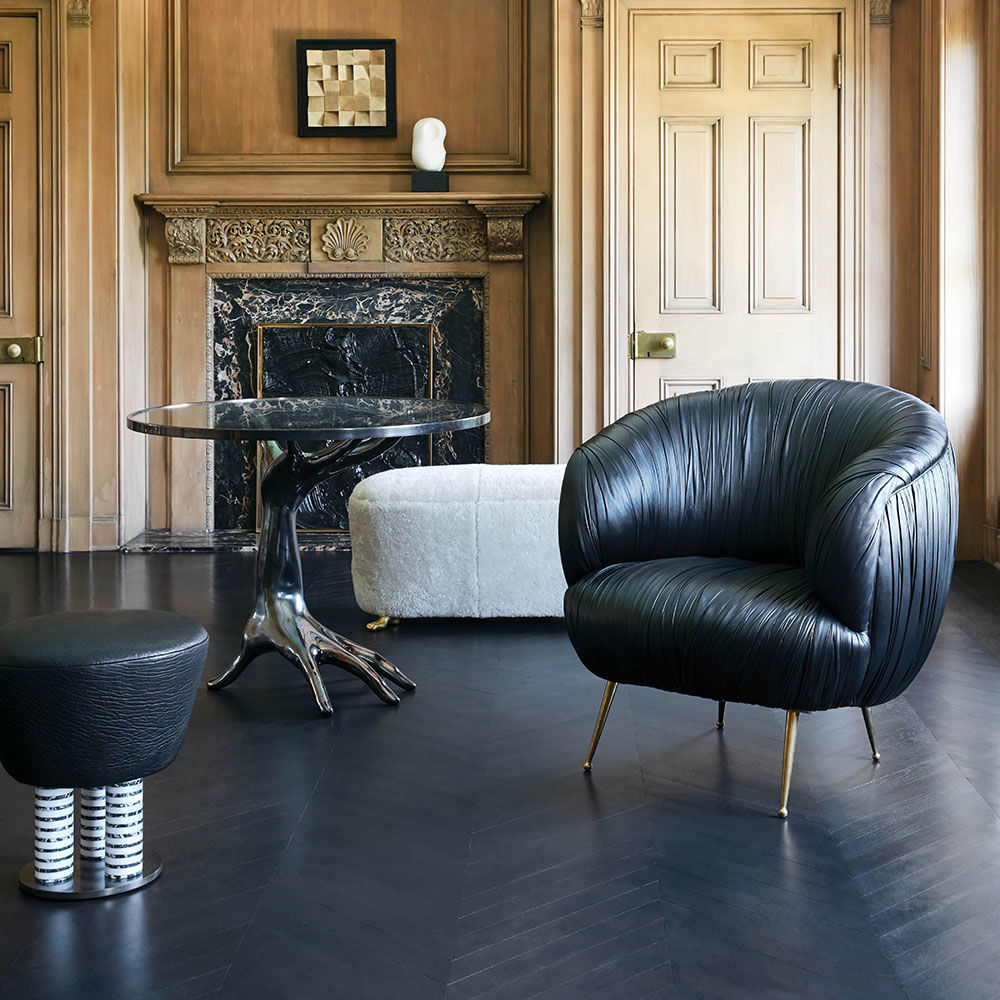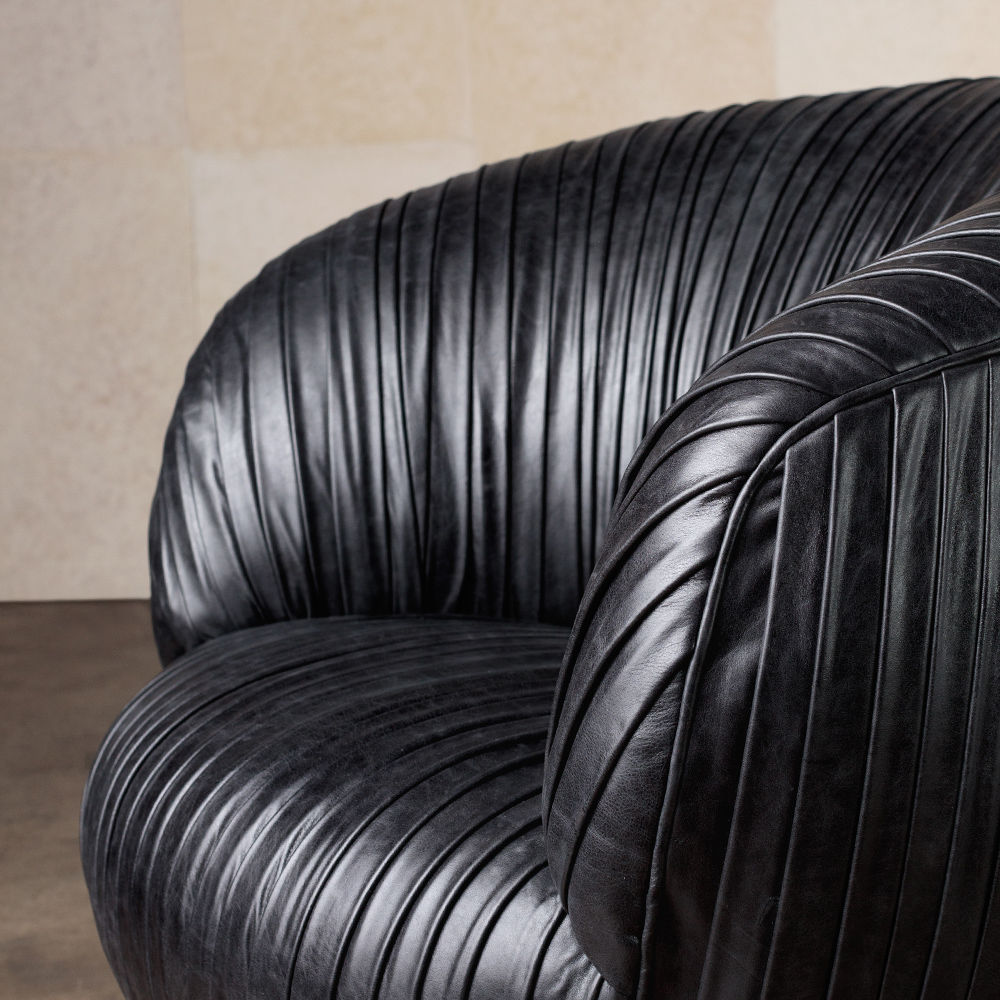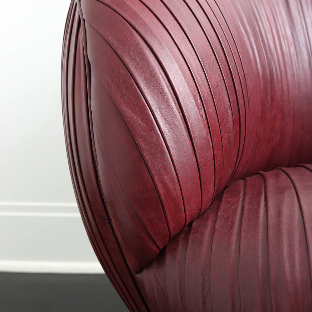 我们的标志性黄油褶皱皮革突出显示了这一标志性作品的戏剧性曲线。 手工制作的硬木框架采用双向销钉,配有8向手动弹簧,可延长使用寿命和性能。