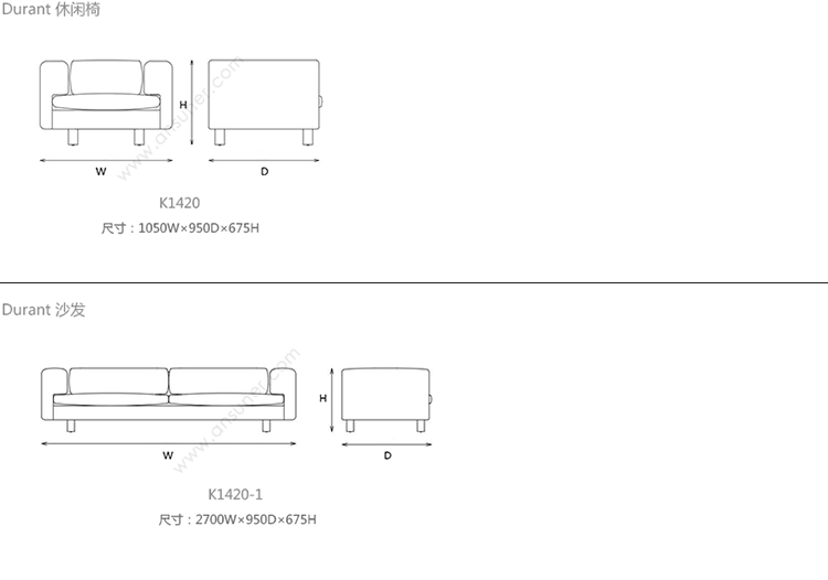 Durant 沙发 系列尺寸/示意图
