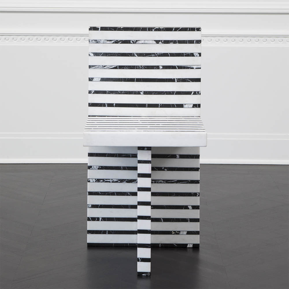 作为混合大理石和建筑构造形式的汇合,Lineage椅体现了艺术和功能的现代二元性。 这款雕塑般的椅子采用天然黑色玛奎那和白色大理石层层交替,经过磨光处理。