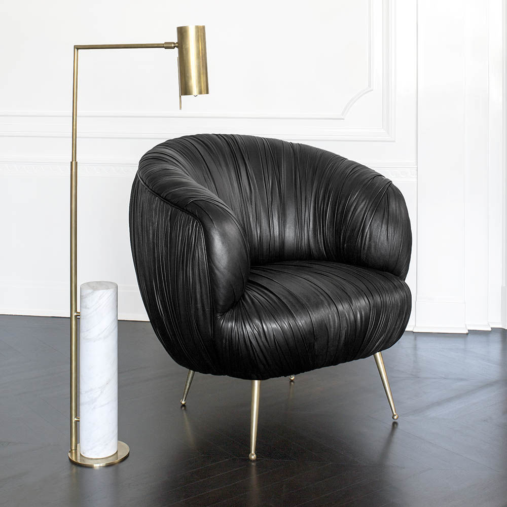 这款极简主义药房落地灯采用古董抛光黄铜或抛光镍制成,功能齐全,美观大方。 可调节臂上的管状遮阳板悬挂在圆柱形大理石底座上方。 灯旋转40度; 中心左右两侧20度,因此您可以轻松地将它放在您的上方作为阅读灯。 要进一步瞄准灯泡,请使用遮阳板上的手柄,该手柄也可以上下旋转180度。 织物缠绕的线具有易于开/关的开关。