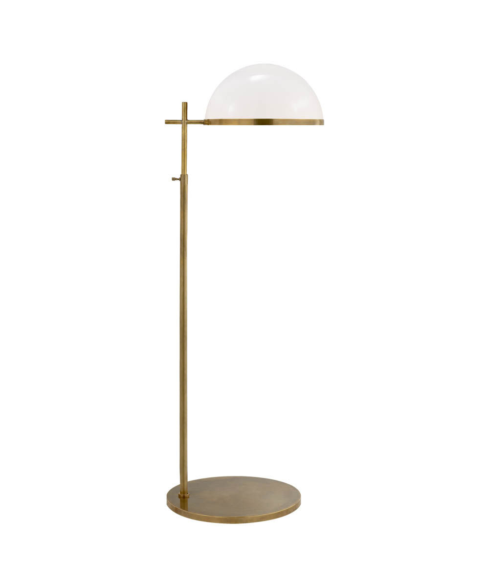 Dulcet中型药房落地灯融合了简洁的线条和简洁的轮廓,融合了外形和功能。 这款药房式灯具高度可调,可旋转,可选配白色玻璃或金属圆顶灯罩,以匹配青铜,古铜色或抛光镍面漆。