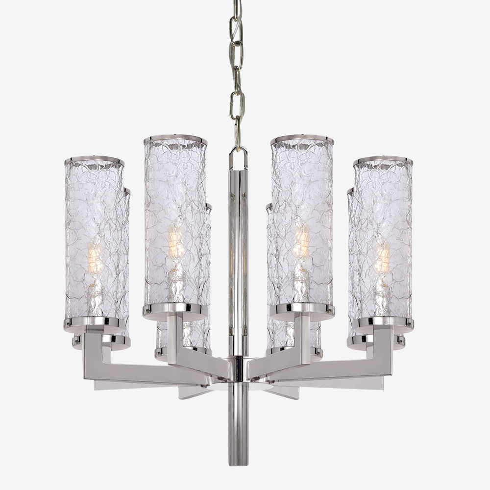 这款现代主义灯具采用凯利的标志性碎裂玻璃技术,引领她对重复、活泼和雕塑形式的热爱。 天然青铜和铸造纹理玻璃赋予这些设计灵魂的建筑和经典的区别。 采用古董抛光黄铜,青铜和抛光镍与裂纹玻璃。