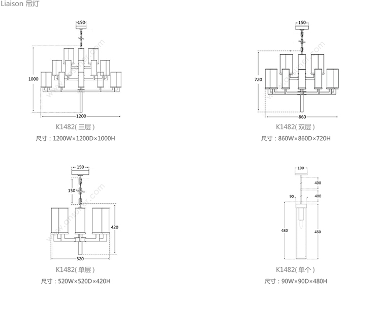 Liaison 枝形吊灯 系列尺寸/示意图