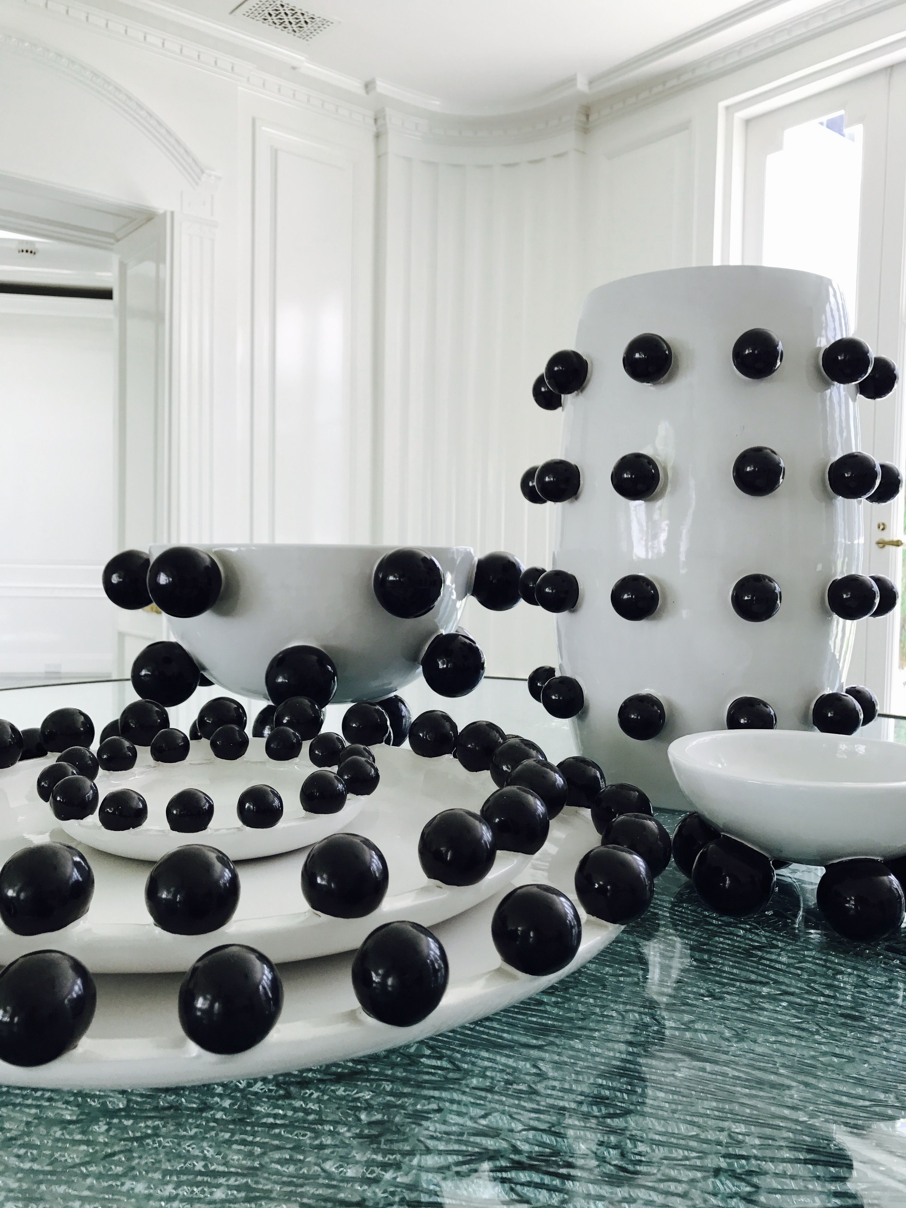 我们的流行碗是手工雕刻和手绘的哑光黑色和白色釉。有趣而又复杂,这款产品将给任何桌面带来活力。