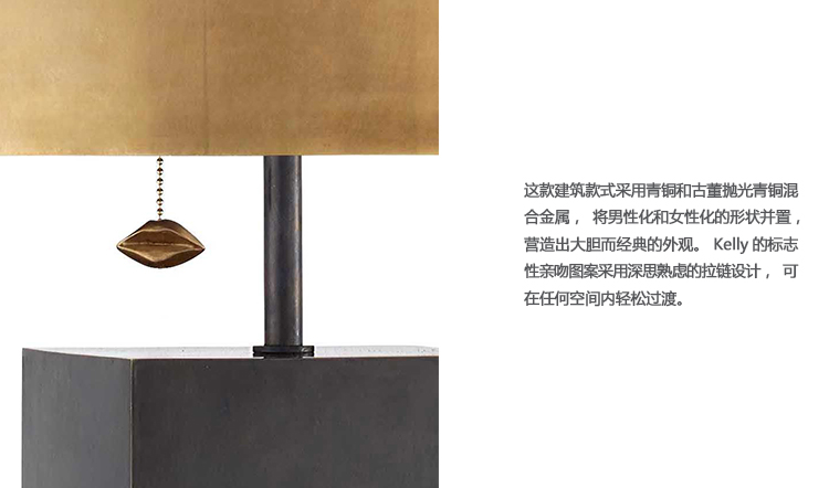 这款建筑款式采用青铜和古董抛光青铜混合金属,将男性化和女性化的形状并置,营造出大胆而经典的外观。 Kelly的标志性亲吻图案采用深思熟虑的拉链设计,可在任何空间内轻松过渡。