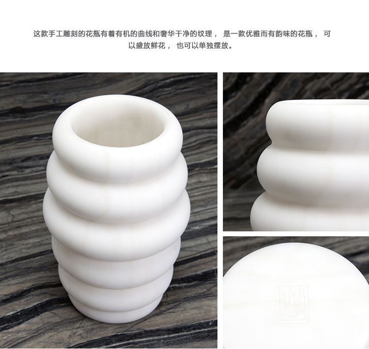 这款手工雕刻的花瓶有着有机的曲线和奢华干净的纹理,是一款优雅而有韵味的花瓶,可以盛放鲜花,也可以单独摆放。