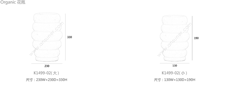 Organic 花瓶 系列尺寸/示意图