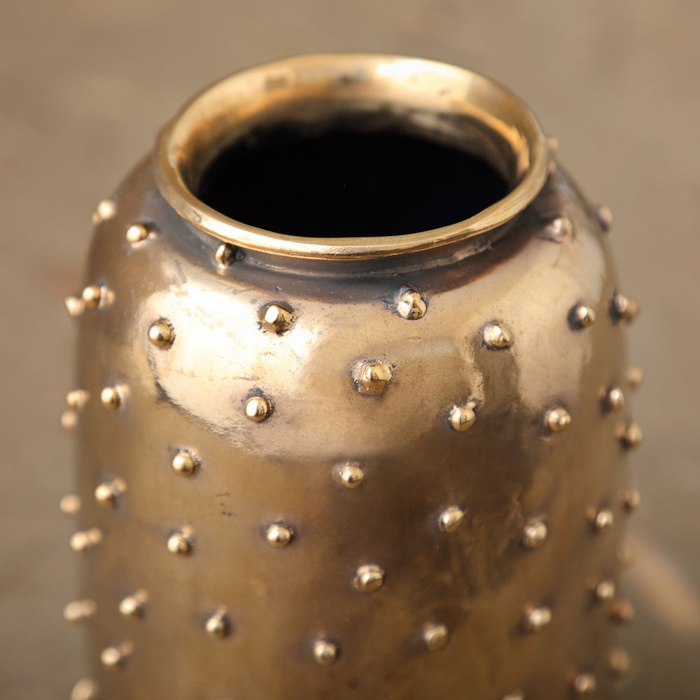 Studded花瓶是一款引人注目的精致配饰,具有性感的摇滚韧性。 这款花瓶由洛杉矶的工匠手工雕刻而成,并采用引人注目的油擦黄铜饰面。