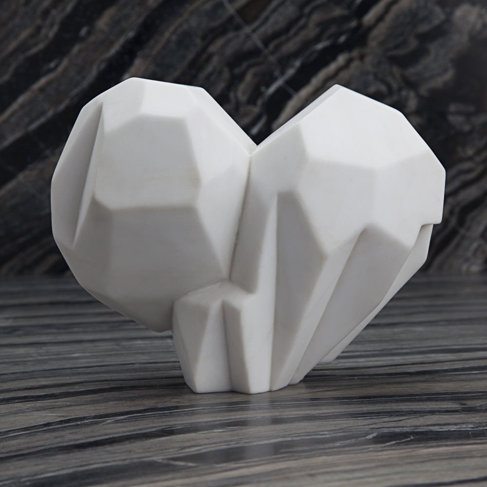 破碎的心脏创造了一个独特的磨练雕塑,非常适合书柜或书架。 由于大理石是天然的,手工制作,每个雕塑都是独一无二的。