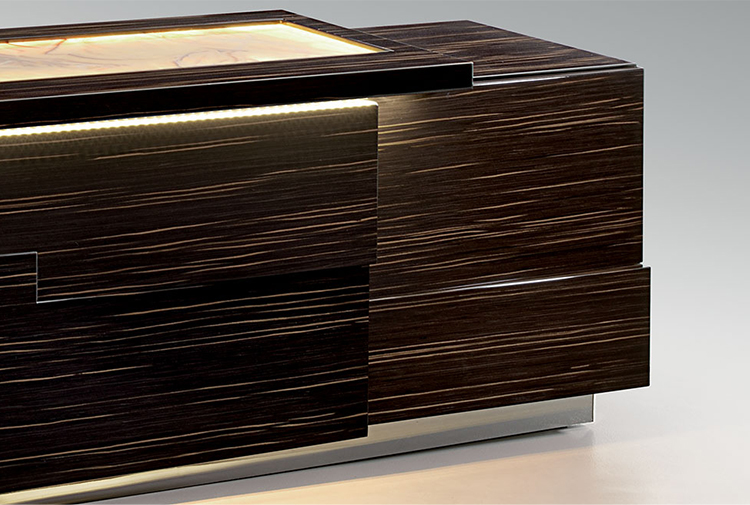 DRAWERS Version with nr.2 internal drawers (on the left side) with coordinated frontal cover. Inner drawers matt lacquered and covered in microfibre