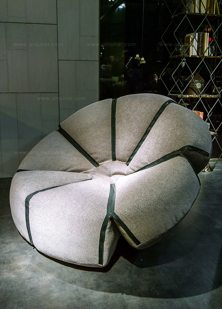 LOL:)是年轻、新鲜、非正式的聊天语言,该名称来自发展和变化很快的缩略词文化。它的形状让你想起半闭花,在这种花中,舒适和包络的花瓣被巨大的拉链绑在一起,赋予了一个与众不同的特征。活泼开朗的有浓烈的色彩和大胆的对比; 清爽时尚,面料及色调优雅。