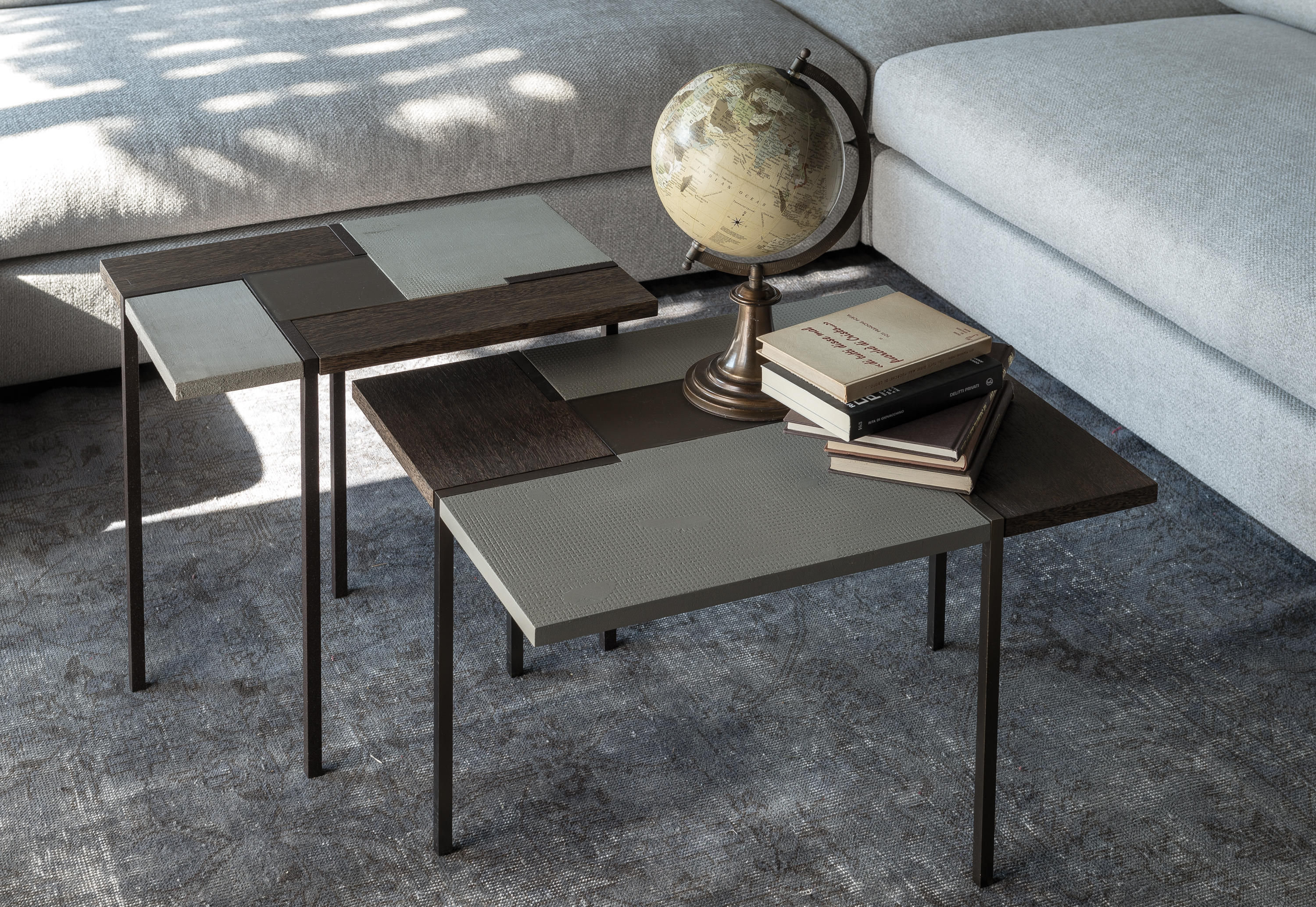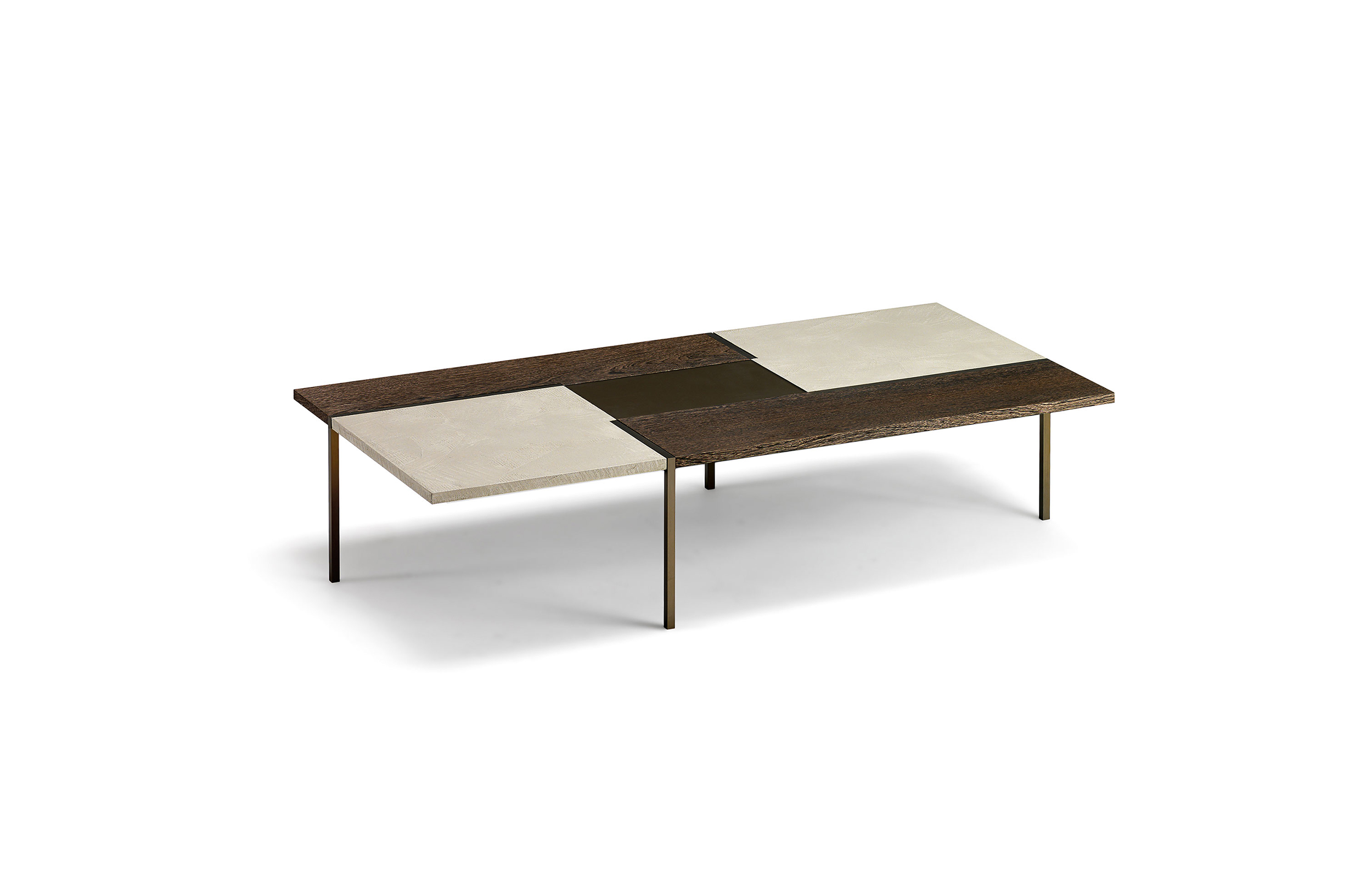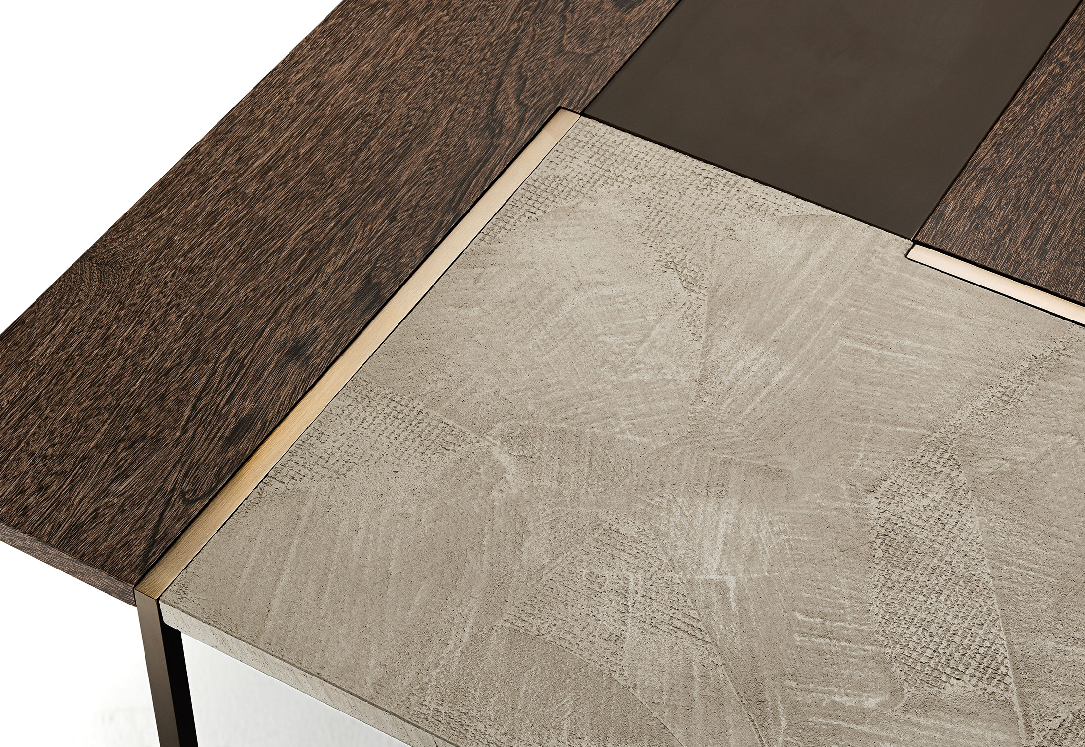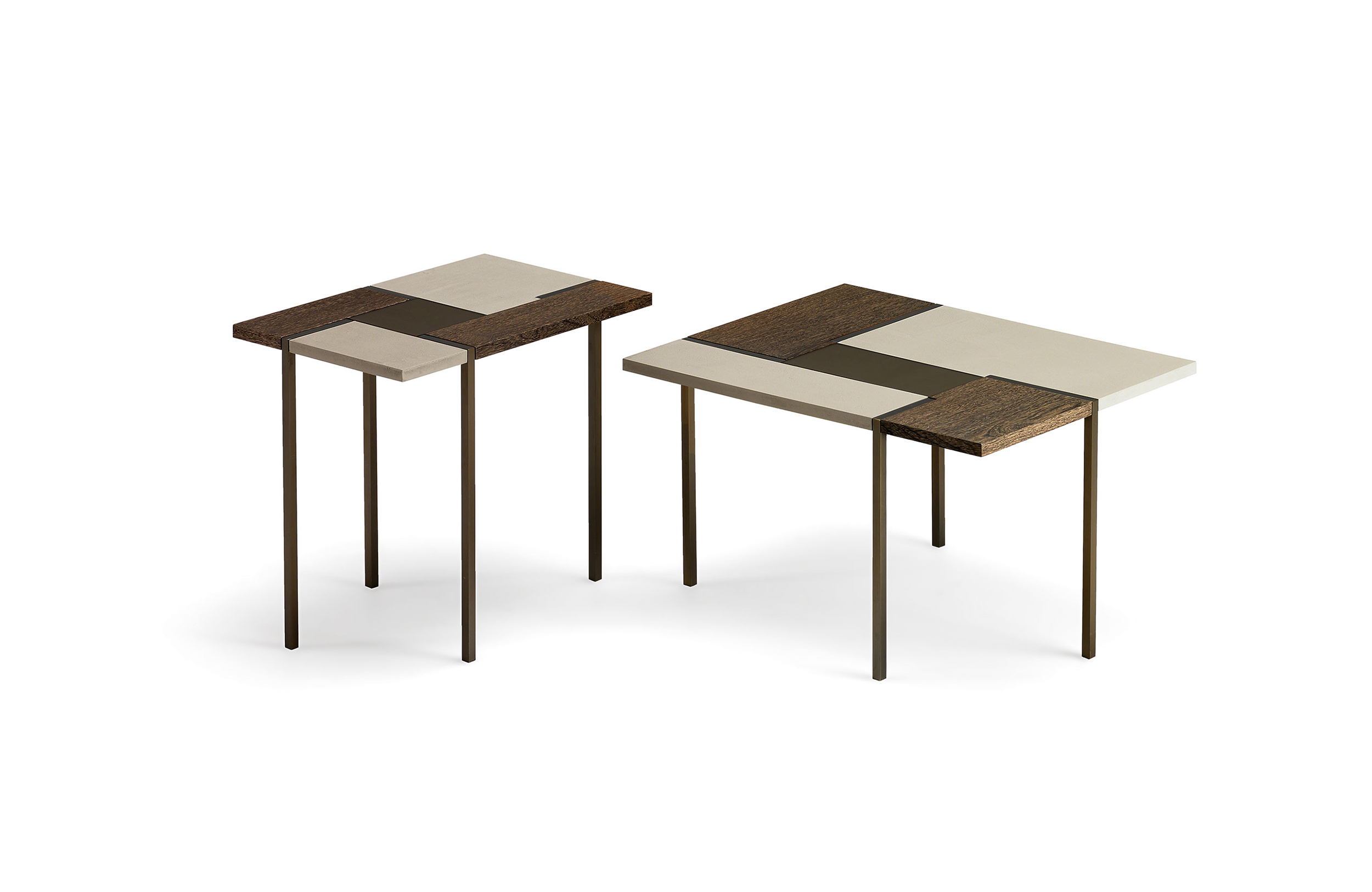 线性和严谨是Stijl表格的精髓,具有强烈的视觉冲击力和不同尺寸矩形组成的特定几何形状。采用中性色调和不同的材料,如水晶,水泥和木材的特性使其成为非常灵活的。正方形的金属腿, 棕色、 黄铜或钛制的, 都集中在桌面上。