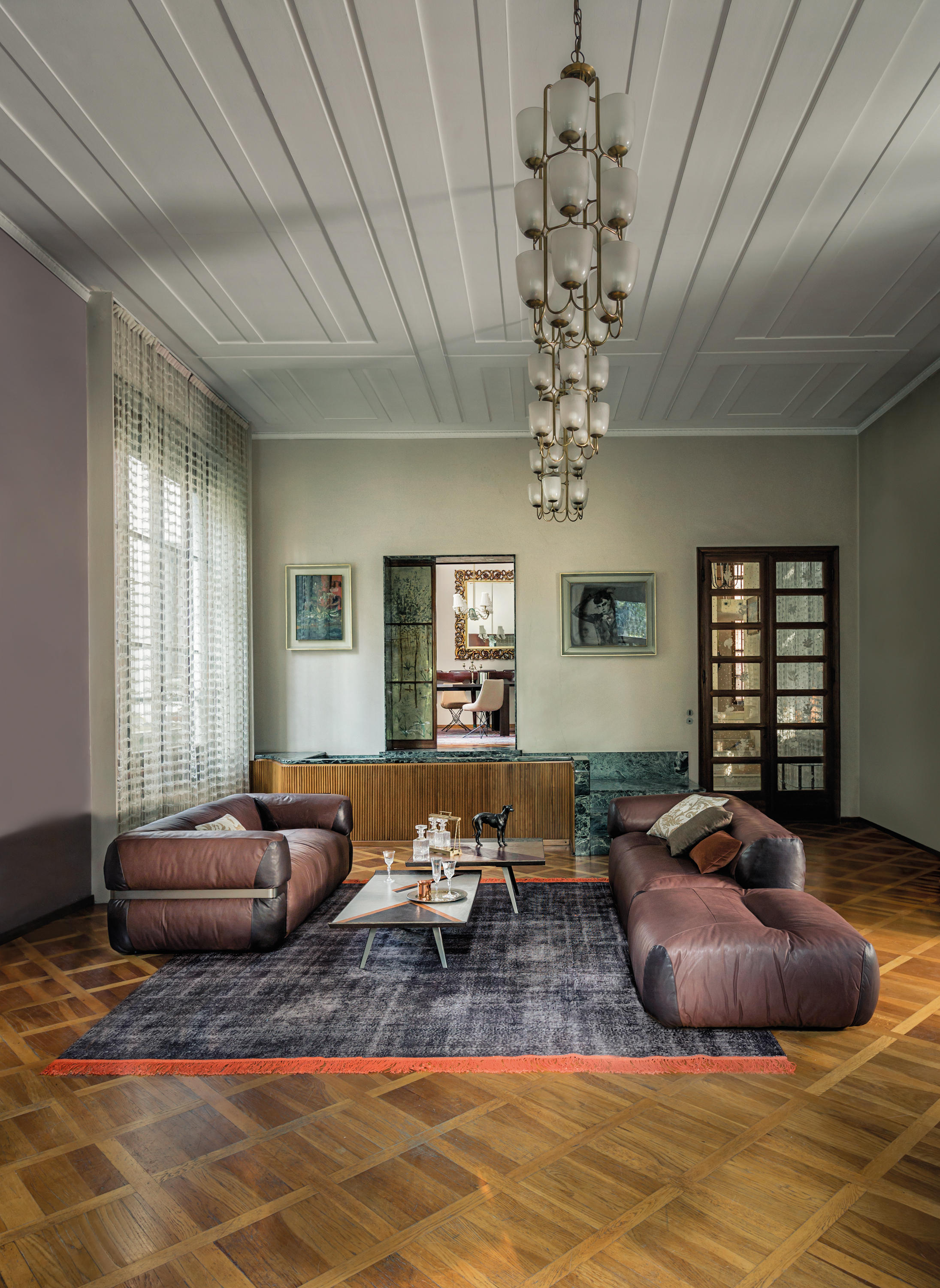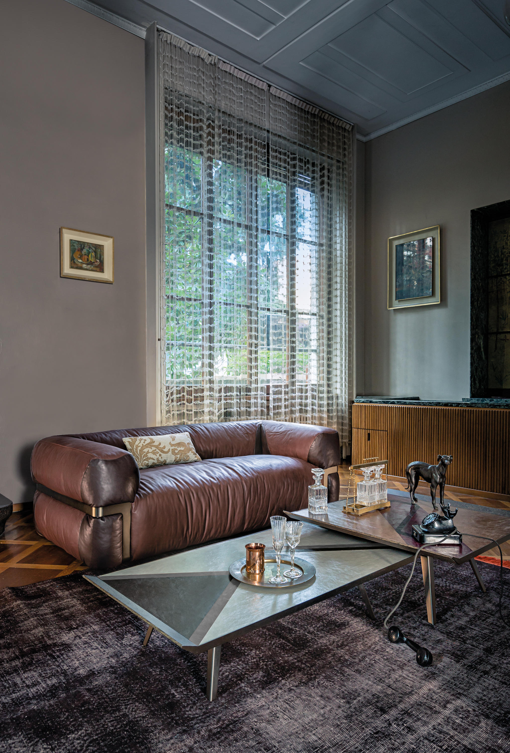 由Gino Carollo设计的的太空入侵者是矩形的系列矮桌子。它们的独特之处在于上面部分覆盖了植物鞣制的皮革,这让人想起了非洲的几何图案,混合了自然和强烈的色彩。