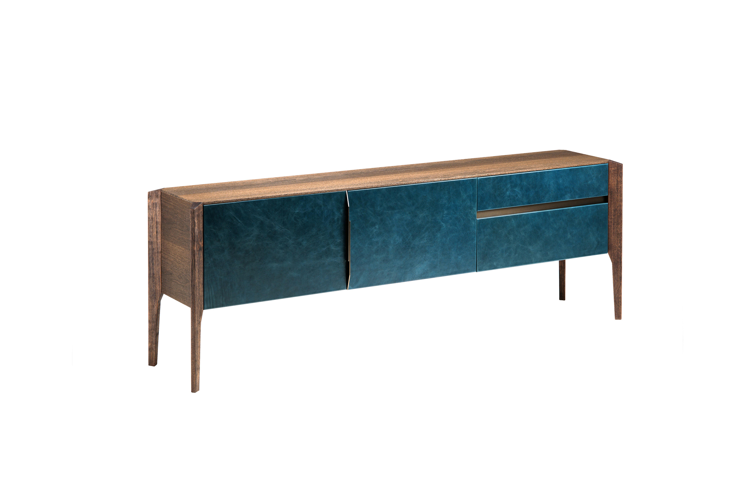 完成最低生活的家具, 但也为一个更经典的住宿, 是由 Manzoni 和 Tapinassi 的荣耀餐具柜, 在莫卡, 卡纳莱托核桃或 Sucupira, 用金属零件涂在云母颜色或镀锌钛, 与印记很纯洁门和抽屉可以用植物皮革覆盖。