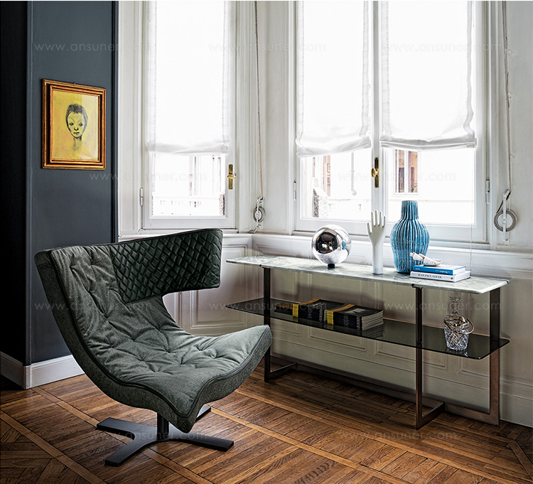 Roxy是一款弯曲柔软的具有帝王风范的扶手椅,其特点是靠背处绗缝部分突出的内衬,这是一种精致而不寻常的设计,适用于任何场合。高背看起来像一个现代的皇室宝座,宽阔的座椅允许多个人就坐,在以优雅舒适的拥抱欢迎身体。