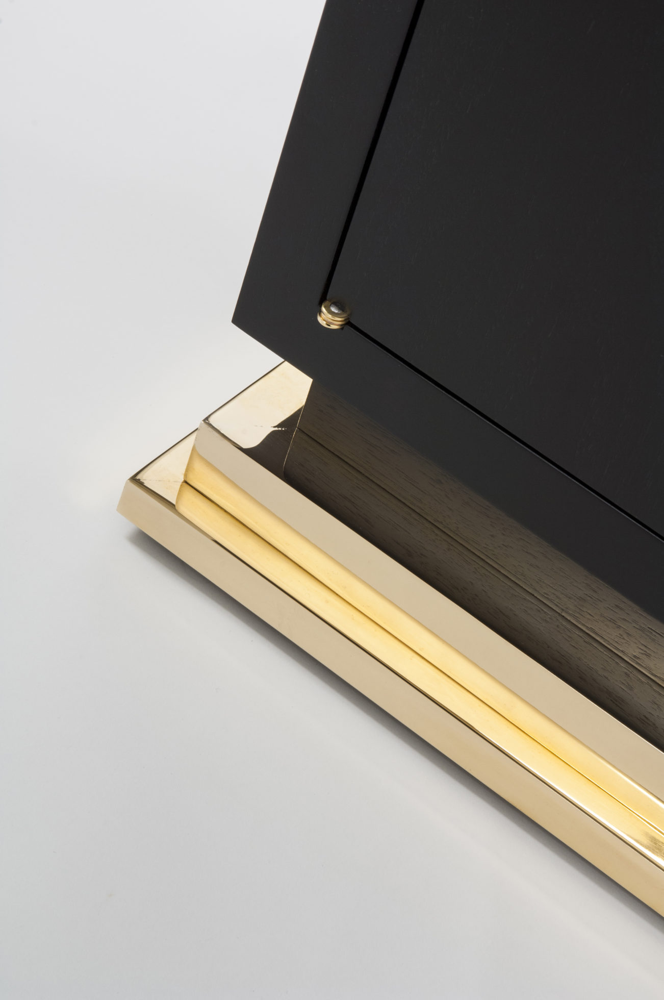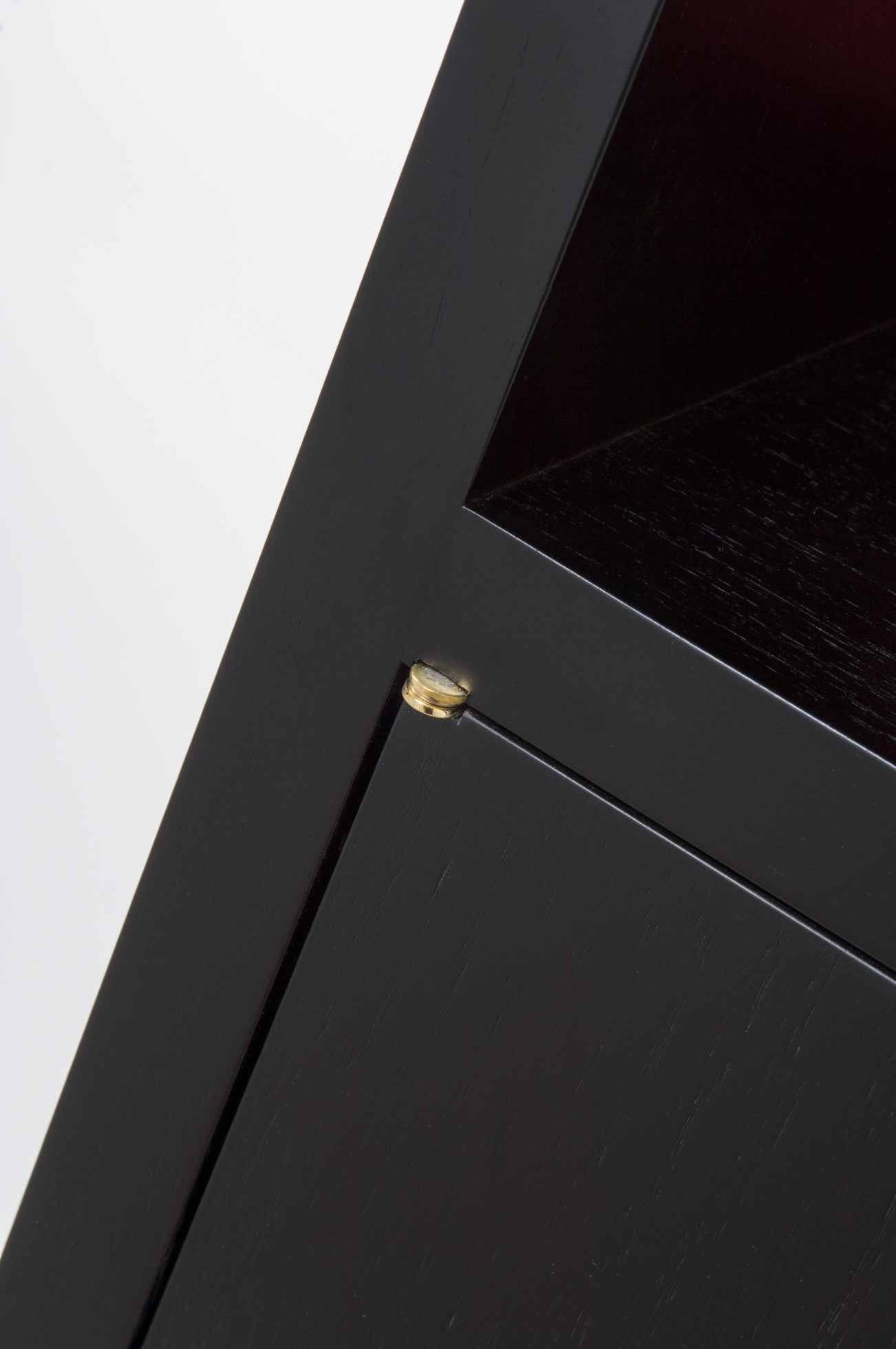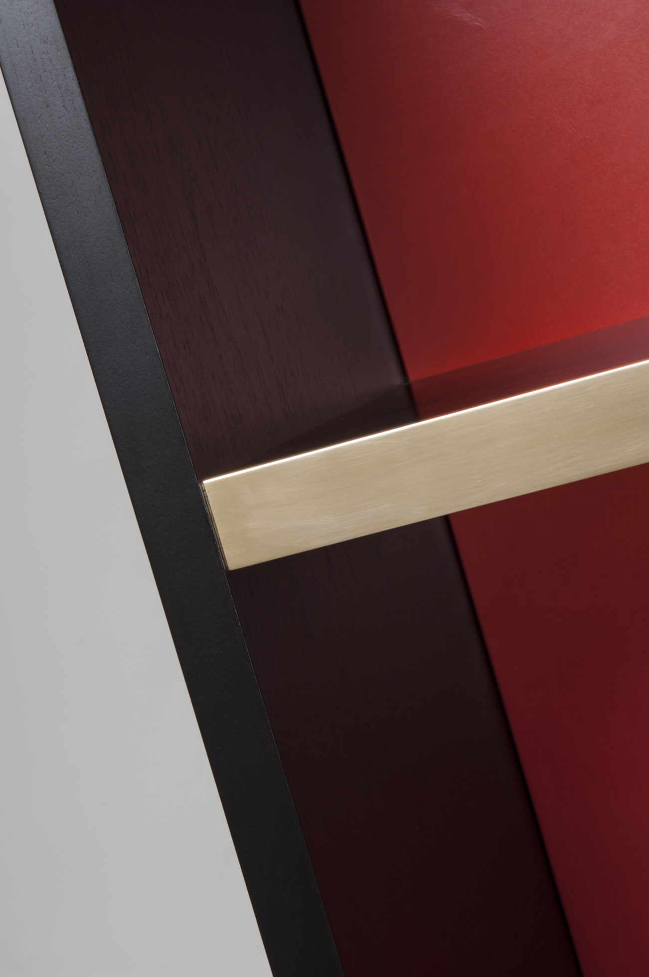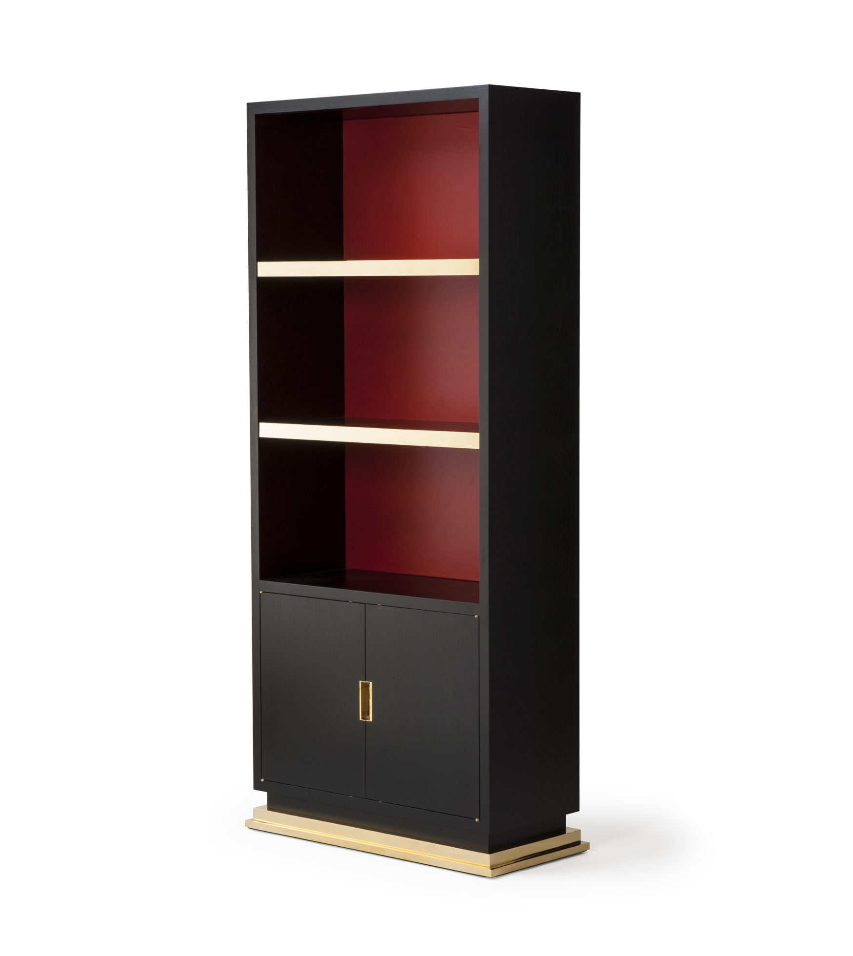 小巧但形状完美的书柜,配有真皮背板,定制手柄和抛光黄铜细节。 可订购尺寸。 这里展示的是美国黑胡桃黑檀木缎面,抛光黄铜细节和红色皮革背架。