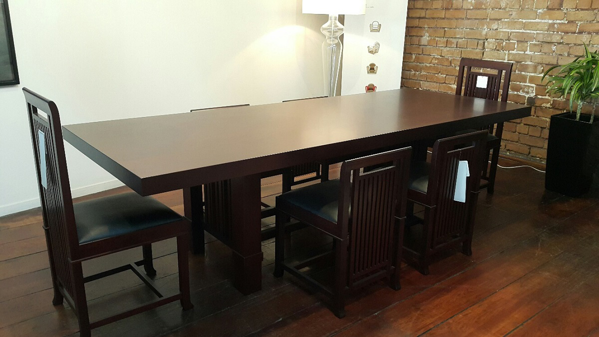 靠背椅,采用天然樱桃木、樱桃木色或黑色胡桃木制造。座垫采用聚氨酯海绵填充,皮革及布艺面料软包。