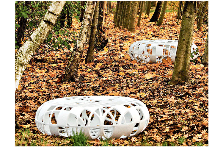 Osorom 圆墩(多功能墩兼桌子)是Konstantin Grcic的一件杰出设计。仅通过其功能性来定义 Osorom 是相当困难的。它是一个座椅同时也是一张桌子,镂空的水晶结构也使它成为了一件雕塑品。Konstantin Grcic试图将产品功能、理性思想、 重要概念运用到设计上,但是他的工作还试图反驳他们。Osorom,其多层的塑料材质、严密几何结构,让人意想不到的曲线和直线设计及高透明度,使得他的理念得以在产品上实现了。