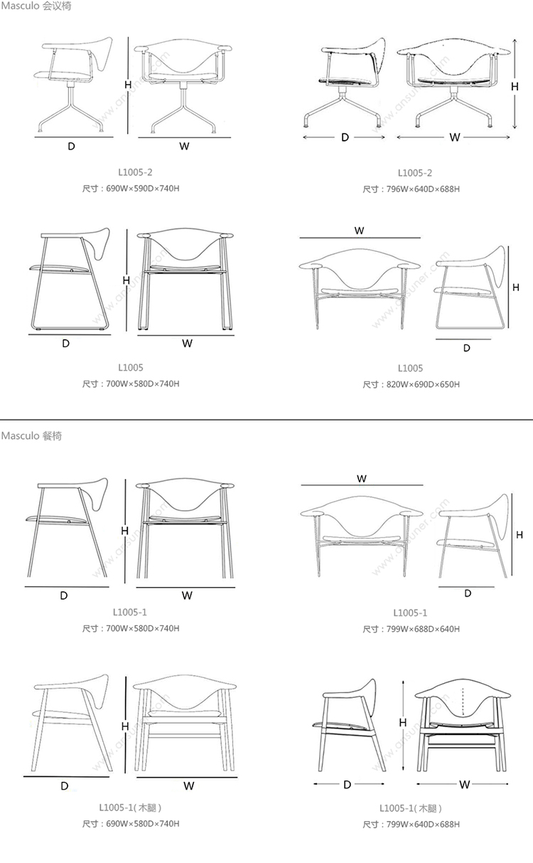 Masculo 办公椅 系列尺寸/示意图